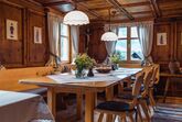 - Sofa, Kachelofen, großer Esstisch, TV;