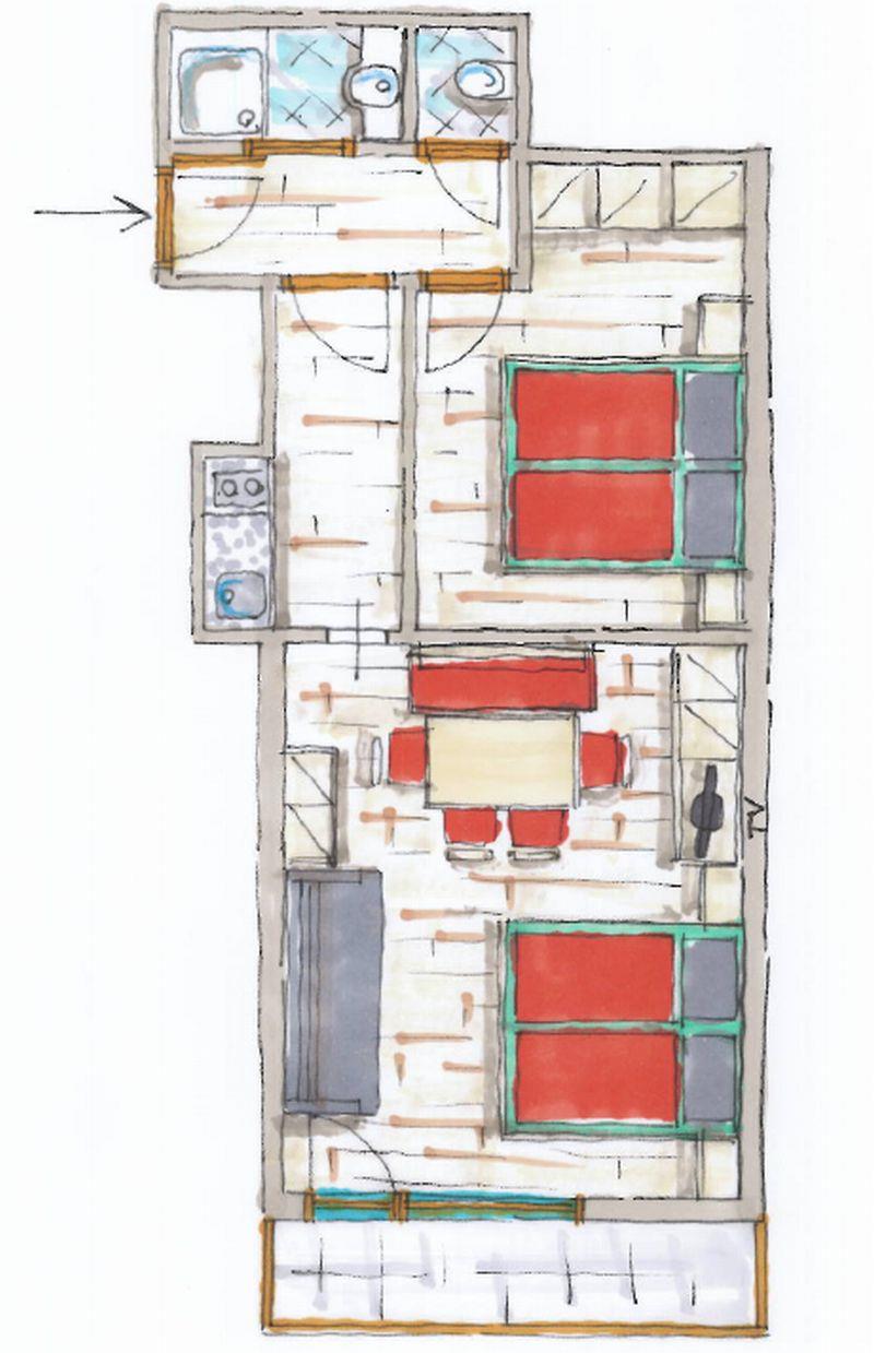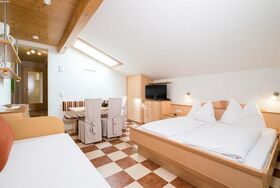 App.bis 5 Pers.Mansardenschlafraum,Kochnische im Durchgang mit Gefrier-Kühlkombi,Dunstabzug,genügend Geschirr,Wohn-Schlafraum(3Betten),Kabel-TV,Dusche,WC extra,Nichtraucherapp.Balkon,Brötchenservice,Neu errichtet