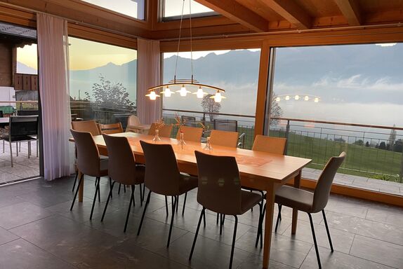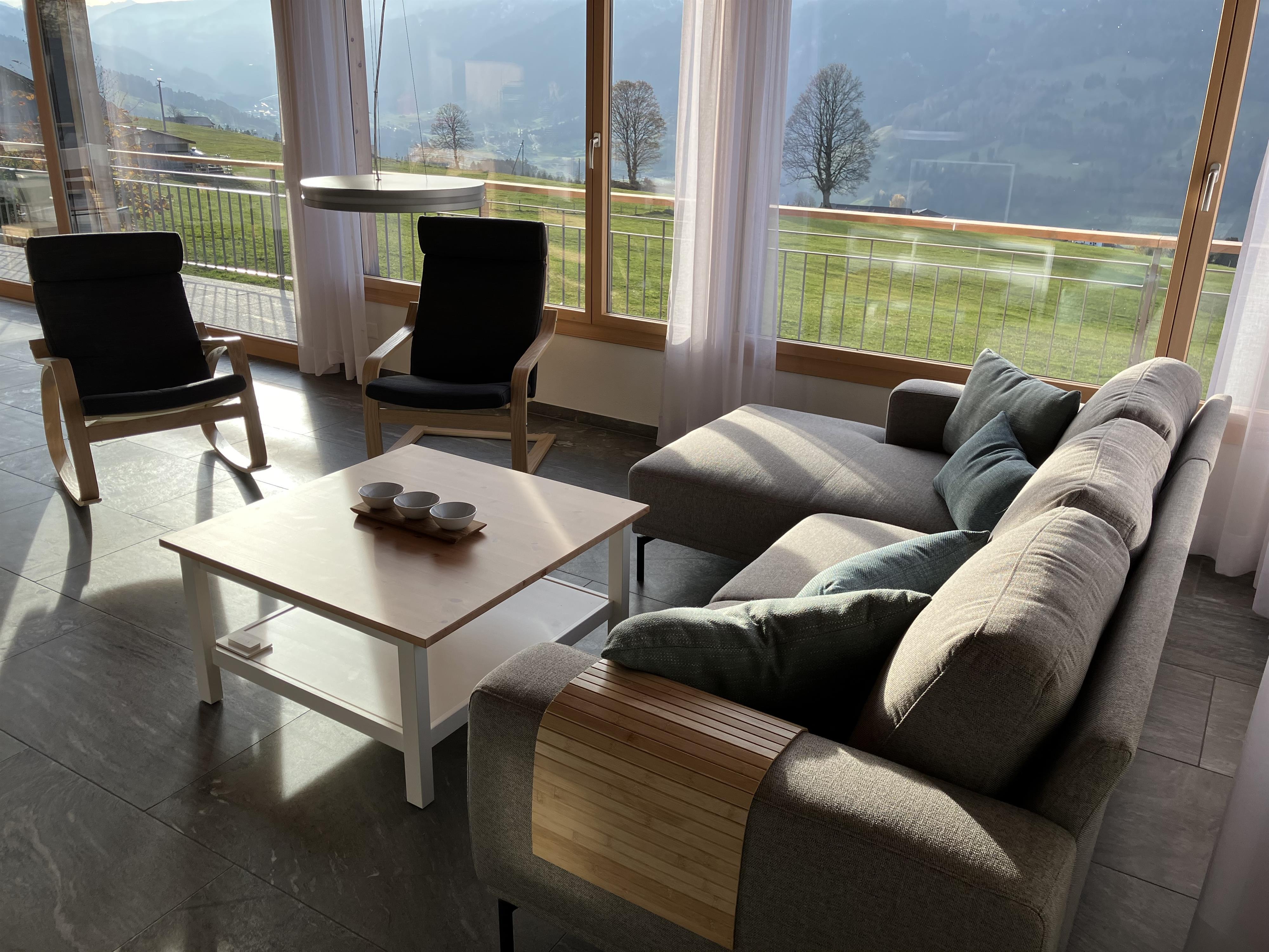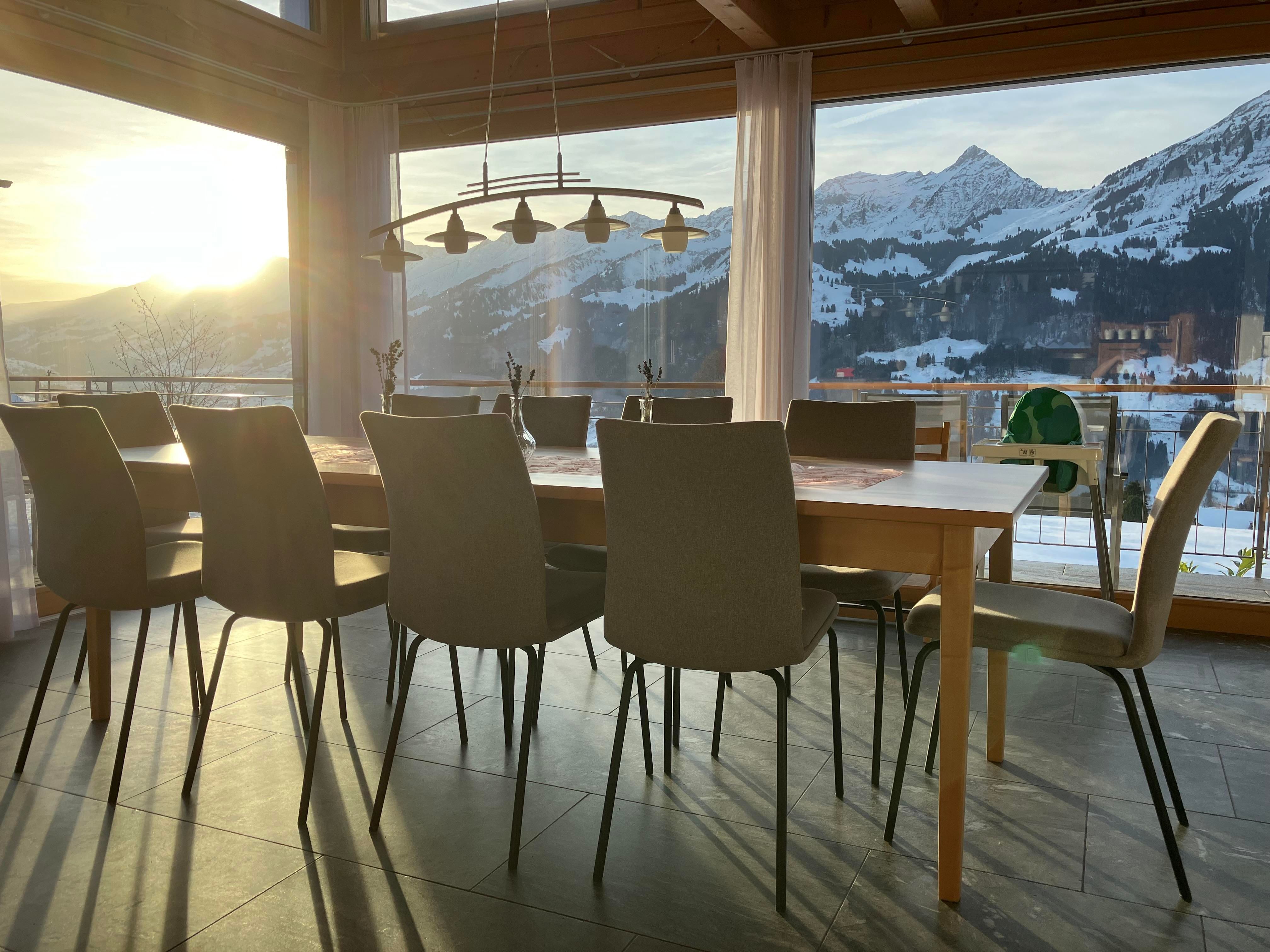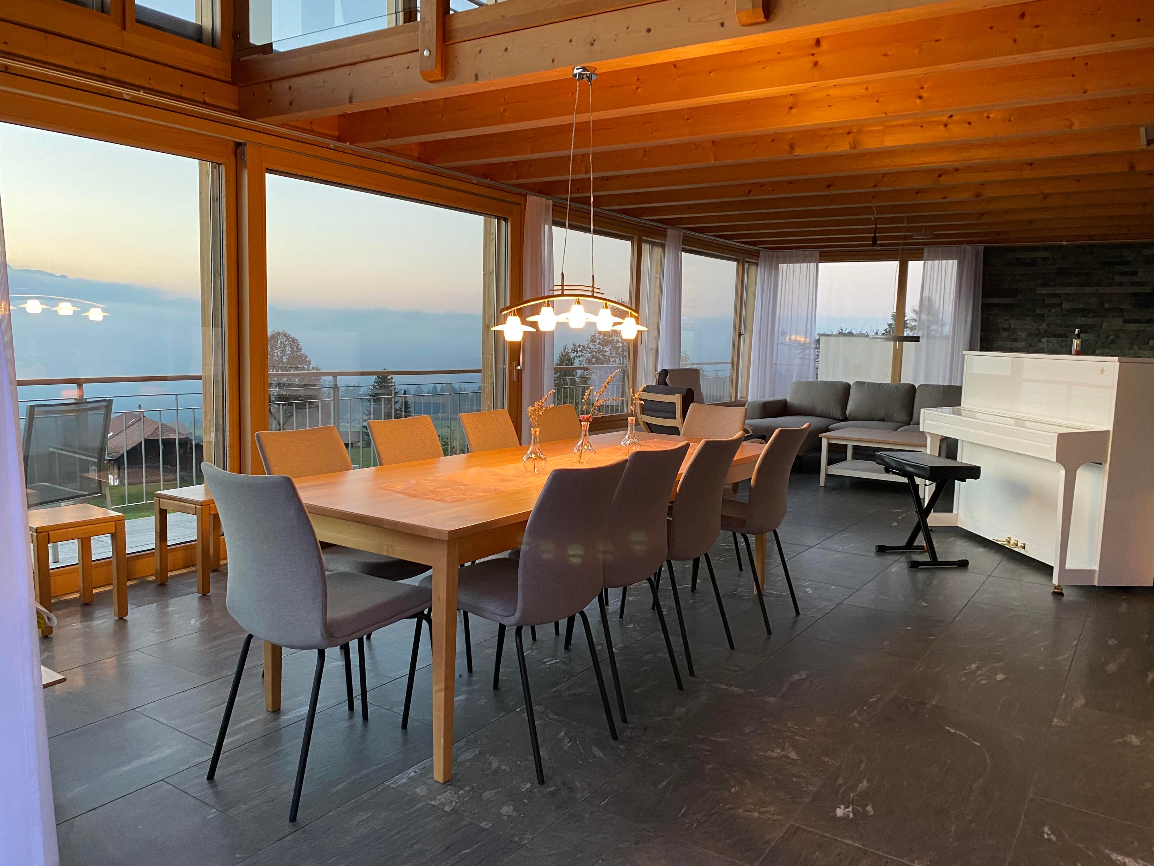 Aussergewöhnlich schönes, freistehendes Ferienhaus an erhöhter, ruhiger und sonniger Lage mit herrlich freier Berg- und Fernsicht in das Kandertal, über das Berner Mittelland bis zum Jura-Gebirge.