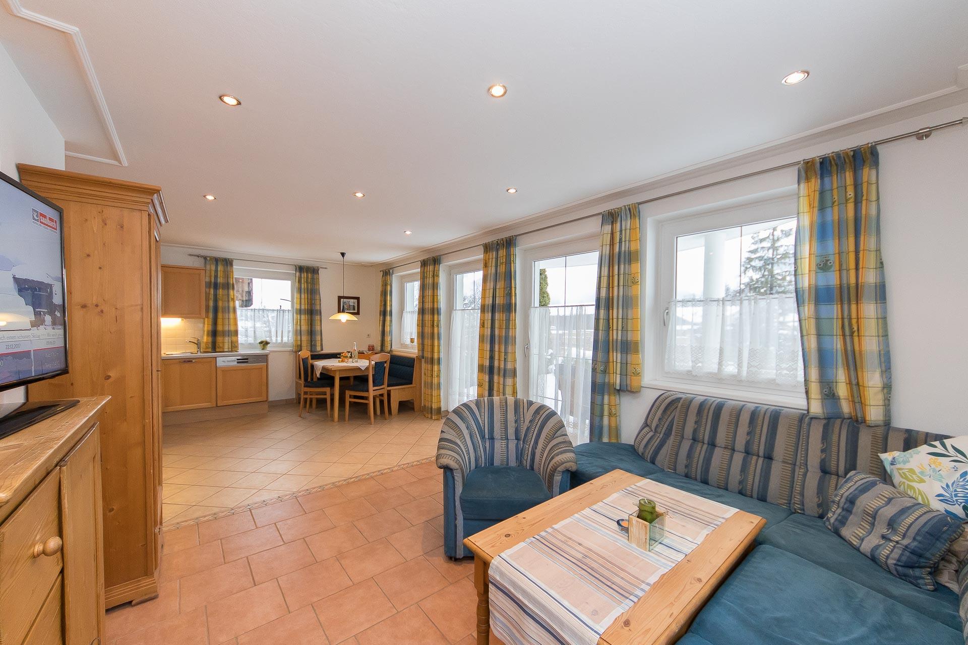 Unsere drei Nichtraucher Ferienwohnungen sind gemütlich mit viel Holz eingerichtet und vermitteln auf sehr angenehme Weise den Charme alpenländischen Flairs. Komfort wie gratis W-Lan, Kabel-TV und ein Bike/Skiraum mit Schuhtrockner sind selbstverständlich vorhanden, ebenso eine Terrasse/Balkon.