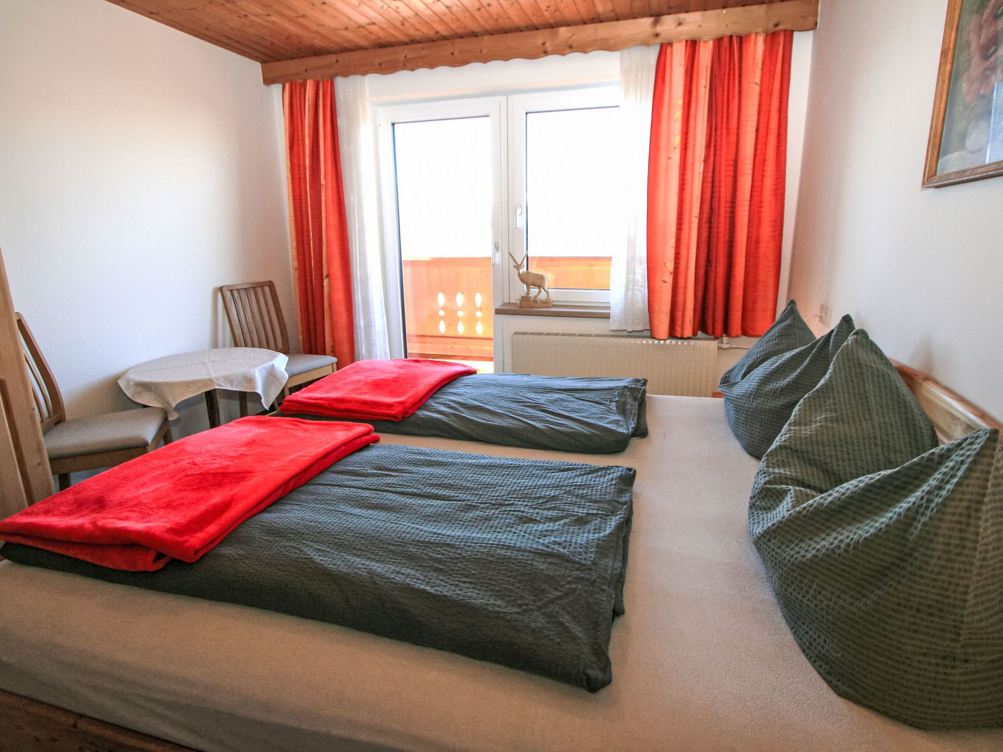 3-Zimmer-Wohnung 60 m2 im 1. Stock. Einfach eingerichtet: Eingang. 1 Doppelzimmer mit Waschbecken. Ausgang zum Balkon. 1 Zimmer mit 1 Diwanbett, 1 Doppelbett, Waschbecken und Sat-TV (Flachbildschirm). Wohn-/Esszimmer mit Essecke und Sat-TV (Flachbildschirm). Offene Küche (Backofen, Geschirrspüler, 4 Glaskeramikplatten, Mikrowelle, elektrische Kaffeemaschine). Dusche/WC. Teppichboden. Balkon. Balkonmöbel. Herrliche Panoramasicht auf die Berge und das Tal. Zur Verfügung: Kinderhochstuhl, Babybett bis 2 Jahre. Internet (WLAN, gratis). Maximal 1 Haustier/Hund erlaubt. Die Wohnungen sind offen zum Treppenhaus. Im Erdgeschoss wohnt die Besitzerin. Skier können in der Garage abgestellt werden. Die Skischuhe im Treppenhaus.