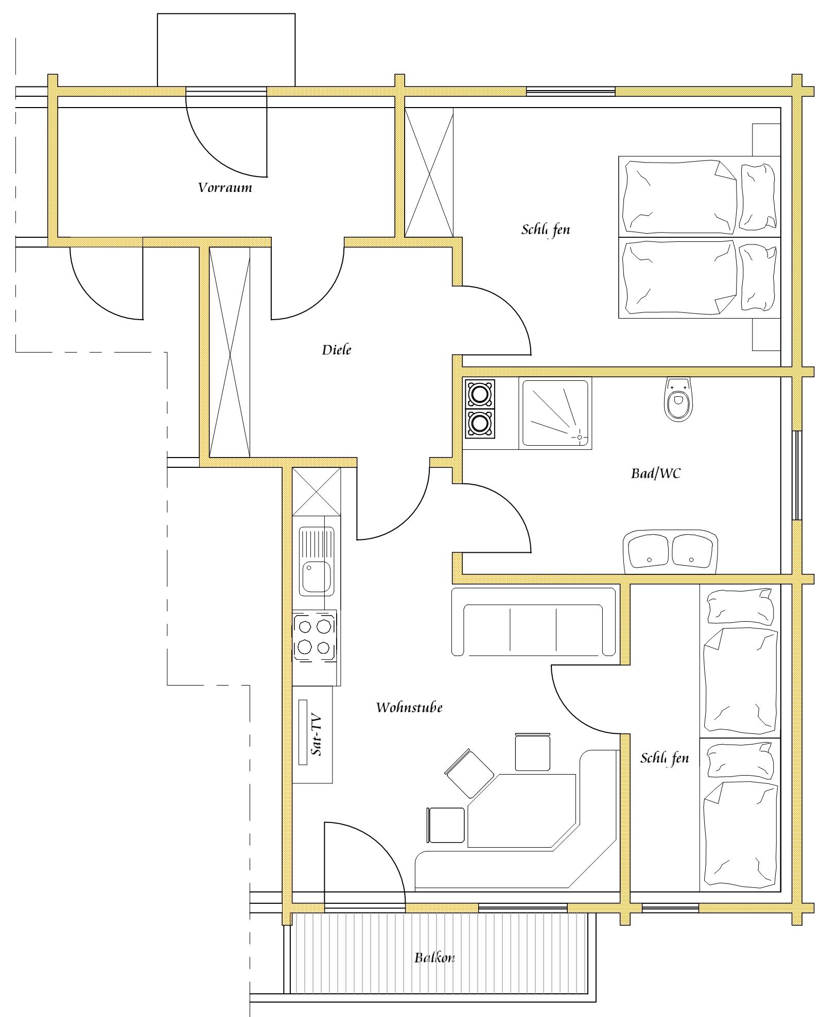 * jeweils 2 Schlafzimmer, Bad mit Dusche und WC, Wohnküche