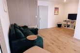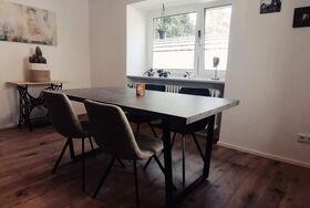 Entspannung findet ihr auf dem großen Sofa im Wohnzimmer. Hier könnt ihr die Füße hochlegen und einen Film bei Magenta TV schauen oder ein Buch aus unserer Buchsammlung lesen. Das Sofa ist ganz leicht ausziehbar und bietet für zwei weitere Personen Platz zum Schlafen. Auch am Esstisch haben bis zu vier Personen leicht Platz.
