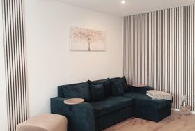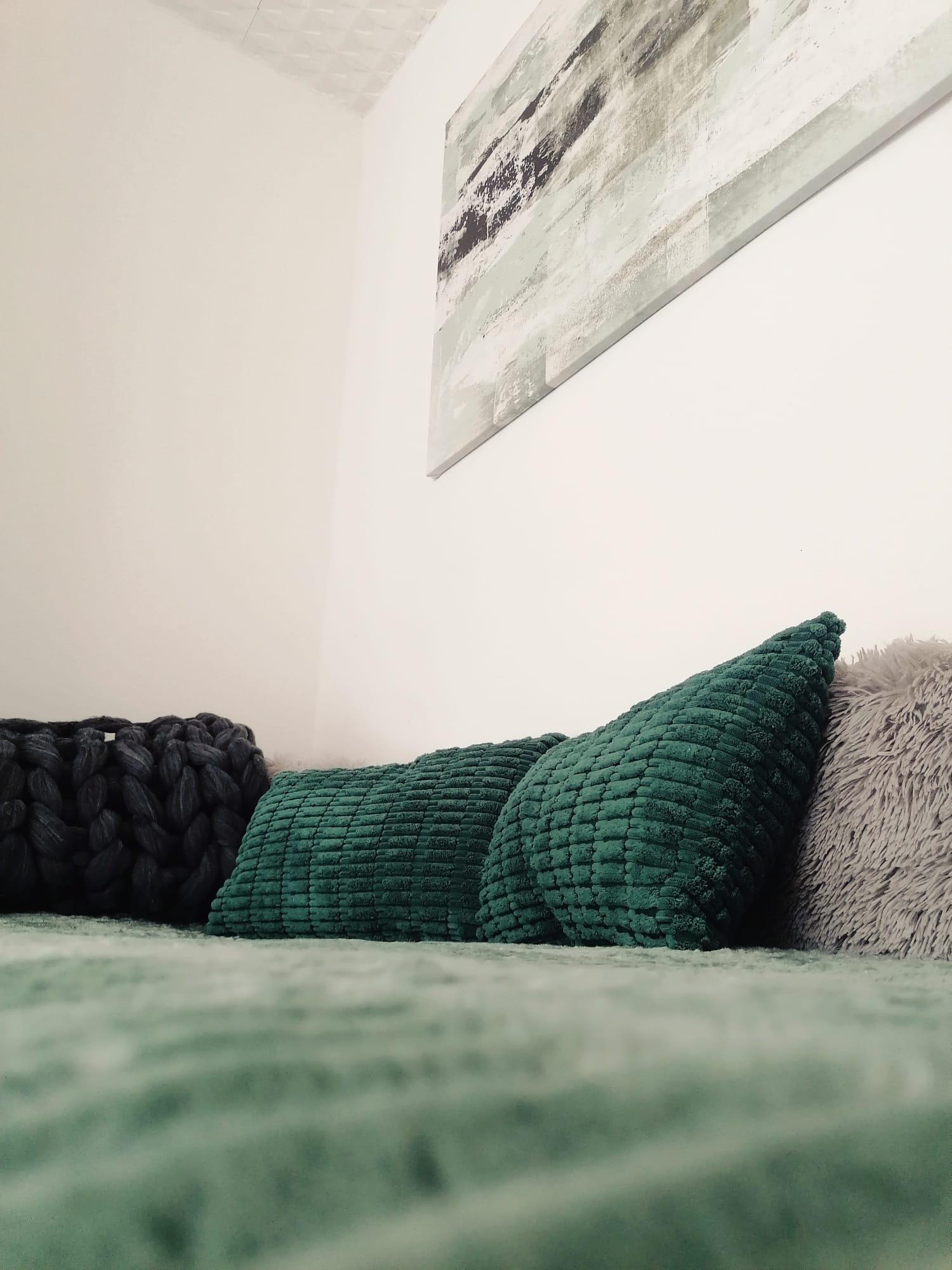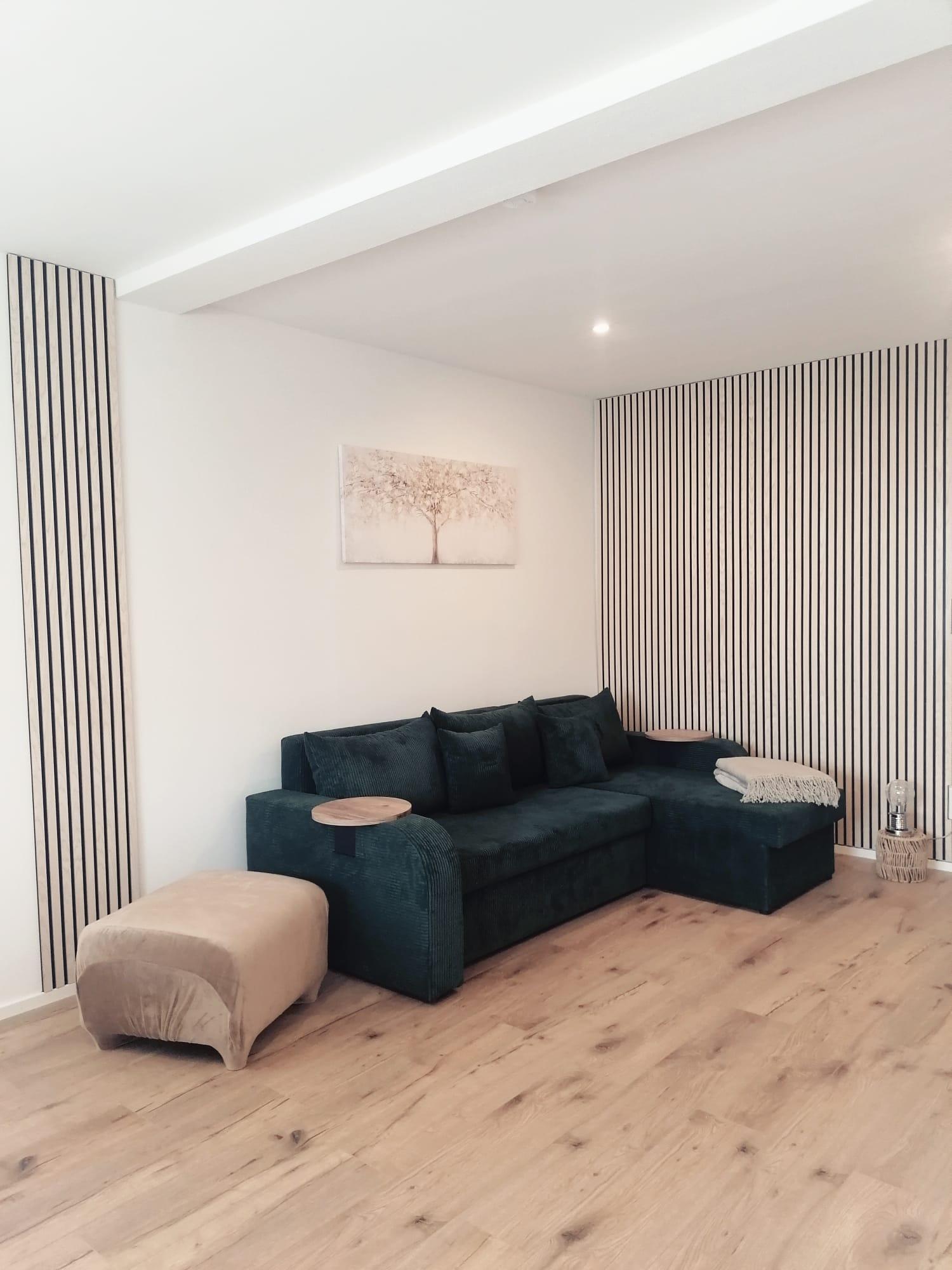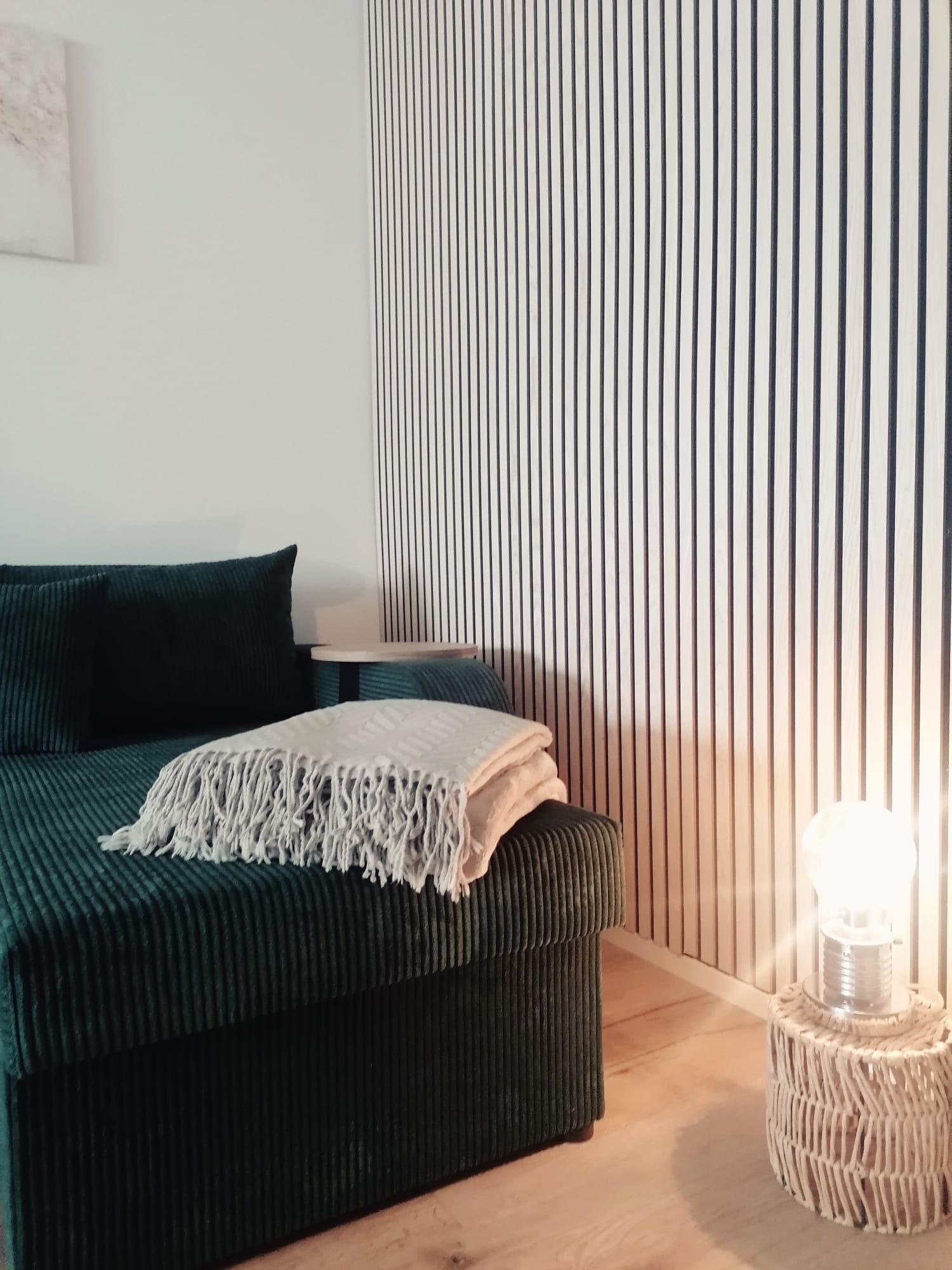 Entspannung findet ihr auf dem großen Sofa im Wohnzimmer. Hier könnt ihr die Füße hochlegen und einen Film bei Magenta TV schauen oder ein Buch aus unserer Buchsammlung lesen. Das Sofa ist ganz leicht ausziehbar und bietet für zwei weitere Personen Platz zum Schlafen.