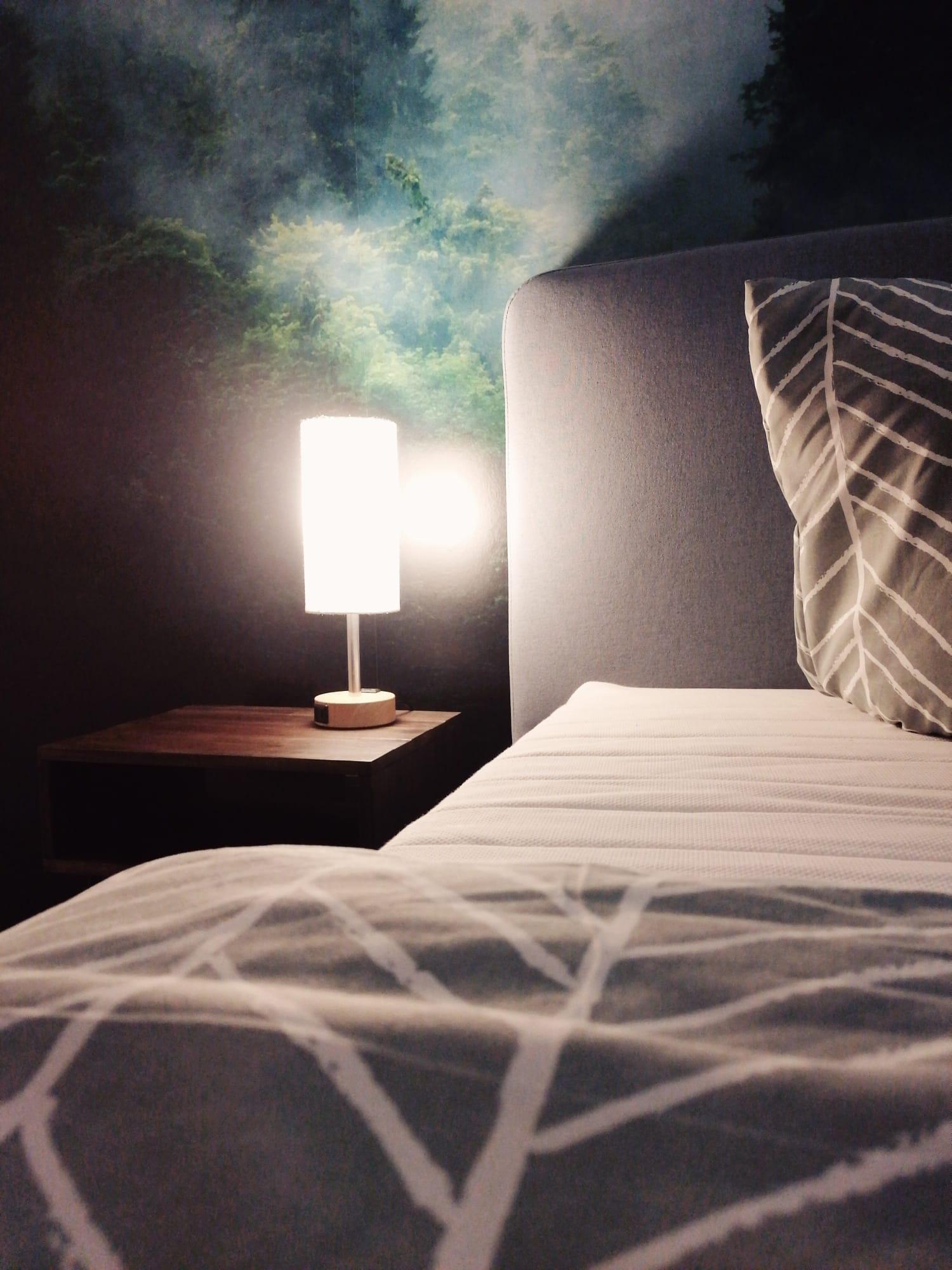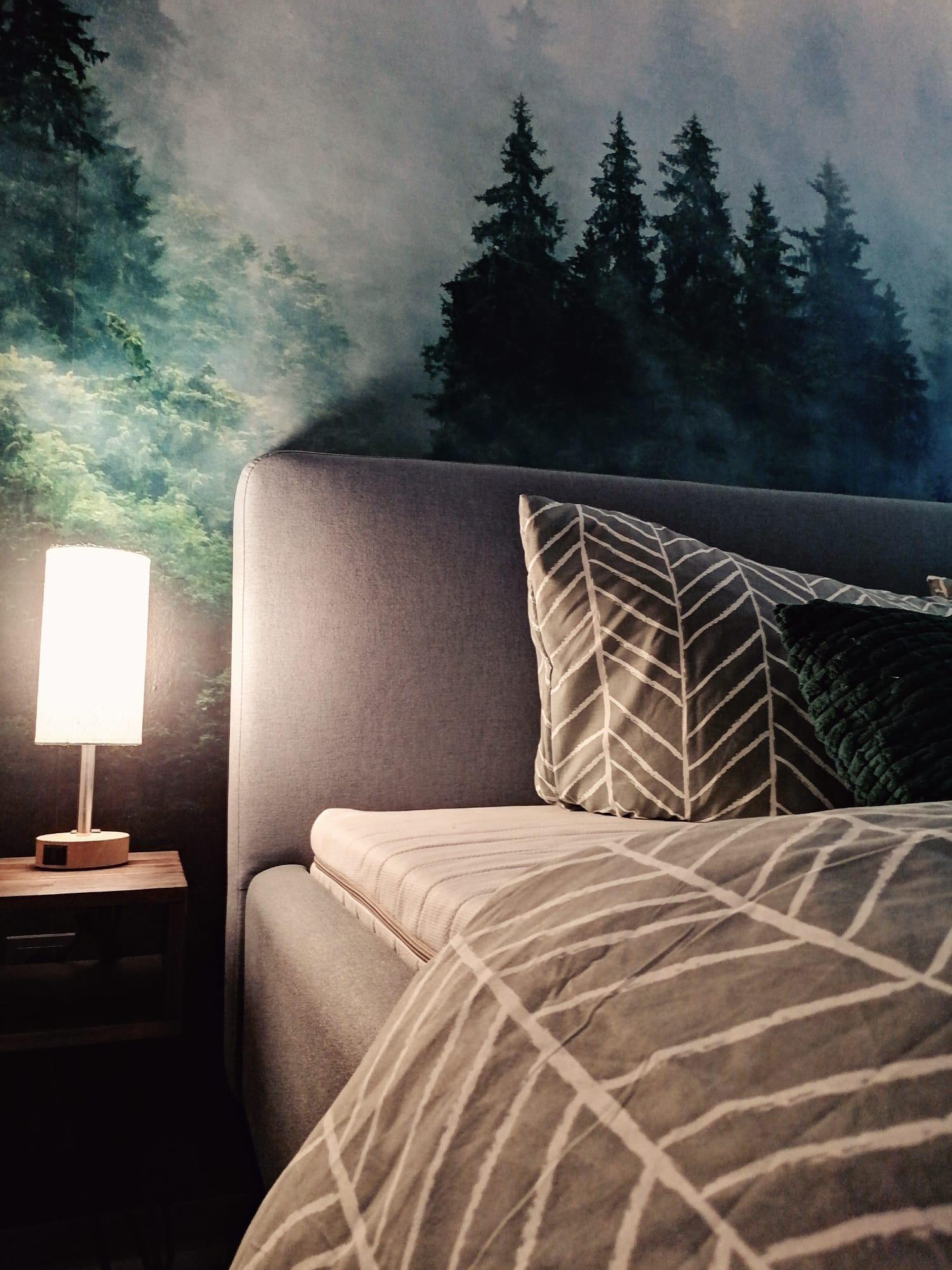 Das sonnendurchflutete Schlafzimmer lädt auch mal zum liegenbleiben und Kaffee im Bett genießen ein. Neben dem Bett findet ihr mehrere Möglichkeiten auch über Nacht das Handy zu laden. Eine Chaiselongue bietet neben dem großzügigen Kleiderschrank weiteren Platz für Kleidung und zum Verweilen.
