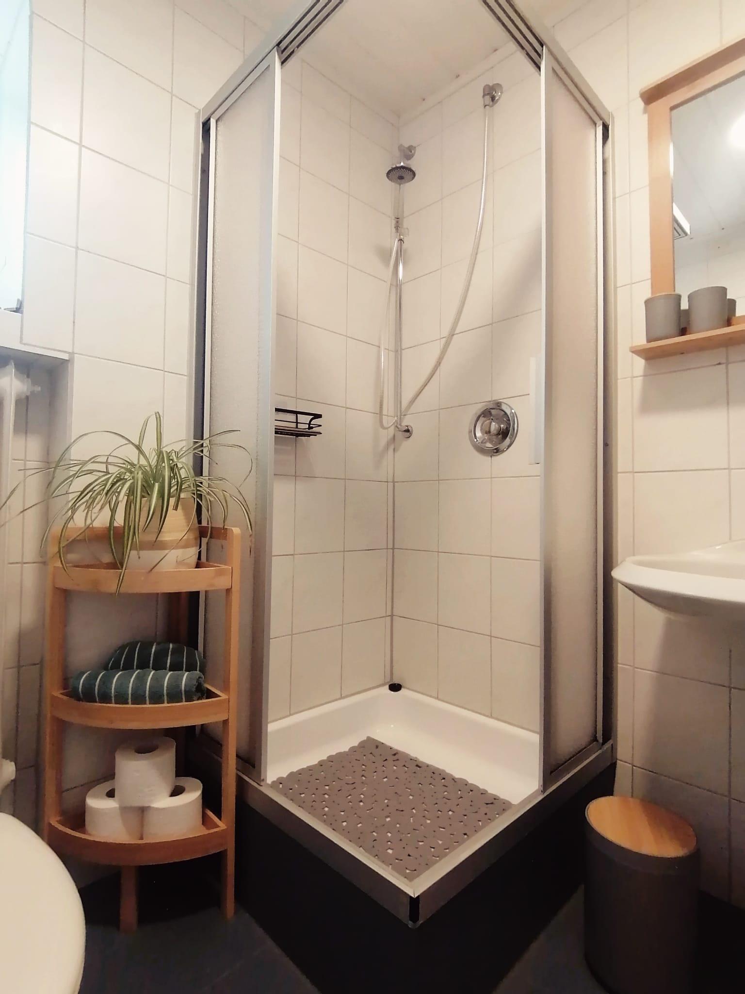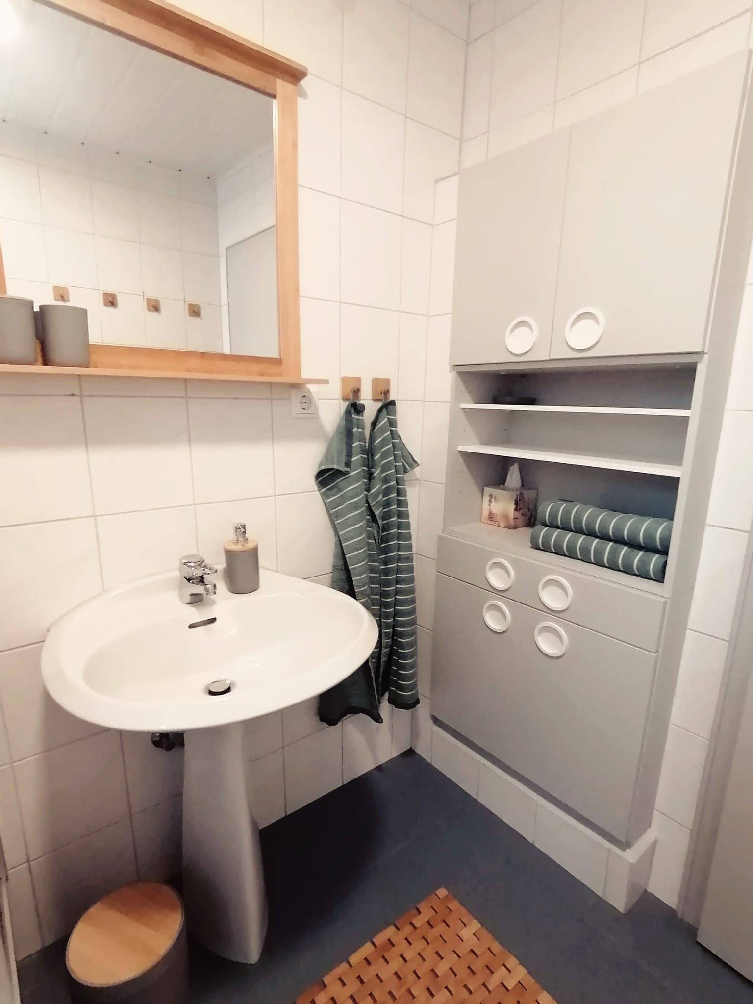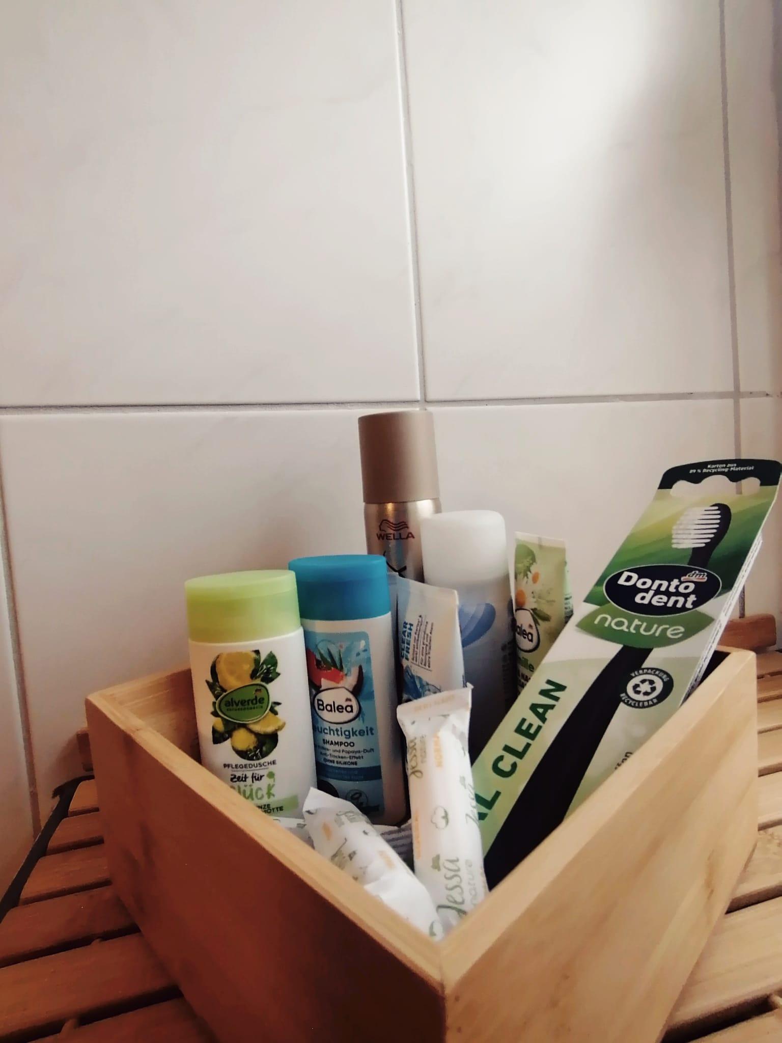 Im Badezimmer findet ihr neben Hand- und Badetüchern und Seife auch eine kleine Auswahl an Bad-Basics, falls man die Zahnbürste doch mal vergessen hat.