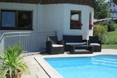 Der Außenbereich lädt mit einer gemeinschaftlich genutzten Terrasse und einem Garten zur Erholung ein. Genießen Sie die frische Luft im Gartenpavillon oder erfrischen Sie sich im solarbeheizten Swimmingpool. Die große Liegewiese mit Gartenteich und die Möglichkeit, Tischtennis zu spielen oder den Grillplatz zu nutzen, sorgen für abwechslungsreiche Unterhaltung unter freiem Himmel.