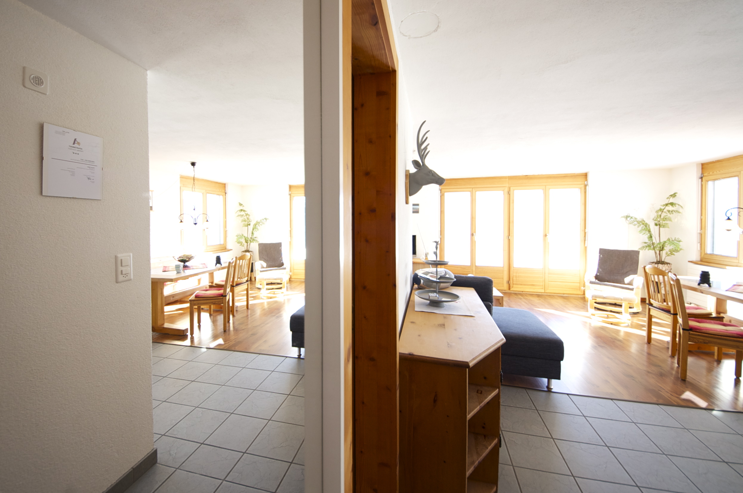 3 1/2 Zimmerwohnung an ruhiger Lage mit traumhaftem Ausblick. Heller Wohnraum mit Essplatz, voll ausgestattete Wohnküche und Gartensitzplatz. 1 Doppelzimmer, 1 Schlafzimmer mit 2 Hochbetten. Kinder- und Rollstuhlfreundlich. Optimaler Ausgangspunkt zum Skilaufen, 7 Min. zum Sessellift Ftan.