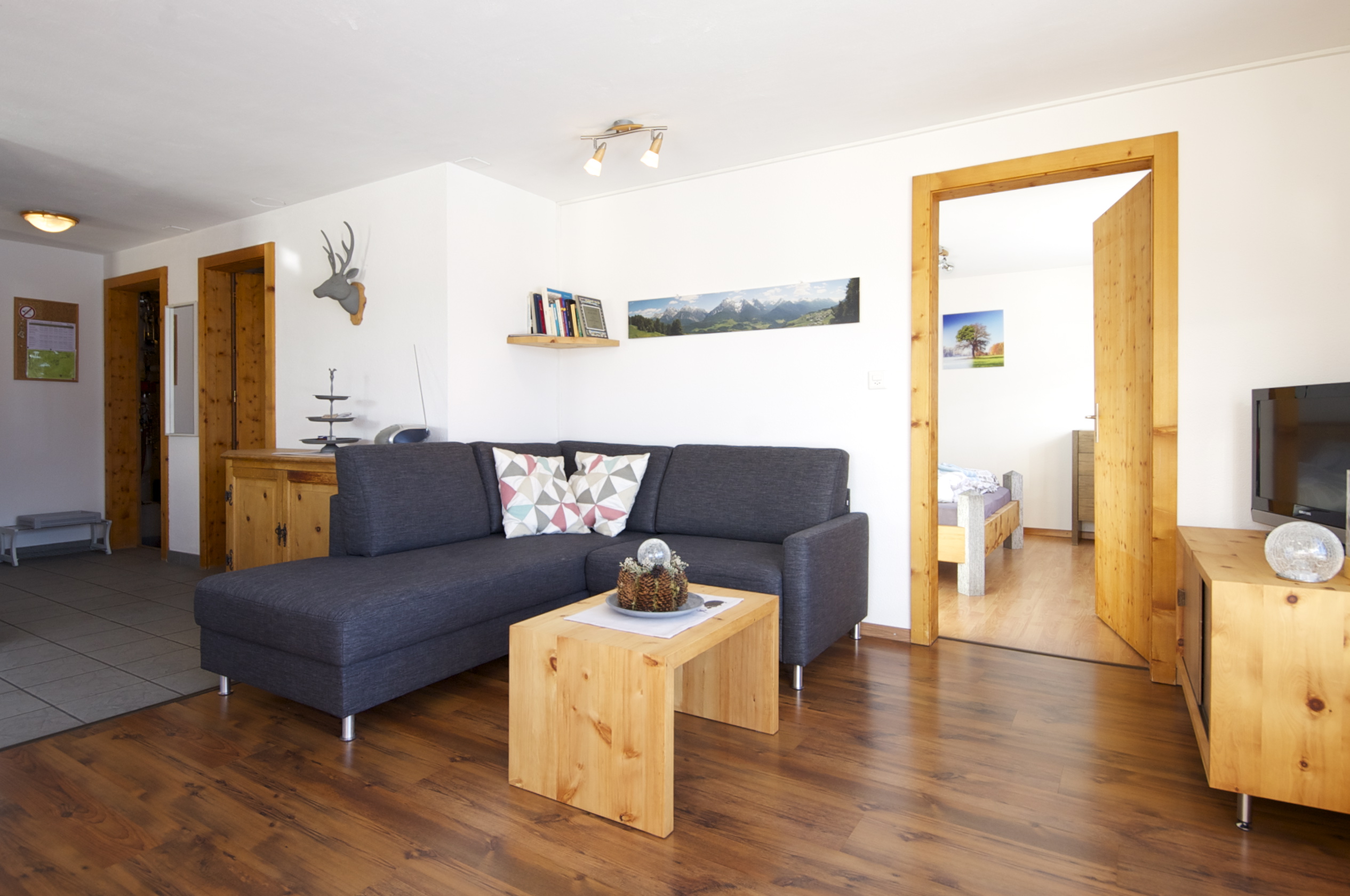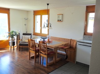 Unsere Ferienwohnung hat einen hellen Wohnraum mit Essplatz und Wohnküche. Die Küche ist ausgestattet mit Backofen, Kaffeemaschine und Geschirrspüler. Das Bad hat eine Badewanne und WC. Der Gartensitz befindet sich auf der Südlage, mit einem wunderschönen Ausblick zum Schloss Tarasp und über das ganze Dorf Ftan. In der Wohnung befindet sich ein Radio- CD Spieler, sowie einen Satelliten-Fernseh und Internetzugang (Wireless). Es gibt zwei Schlafzimmer, eines mit Doppelbett und ein Zimmer mit zwei Hochbetten.