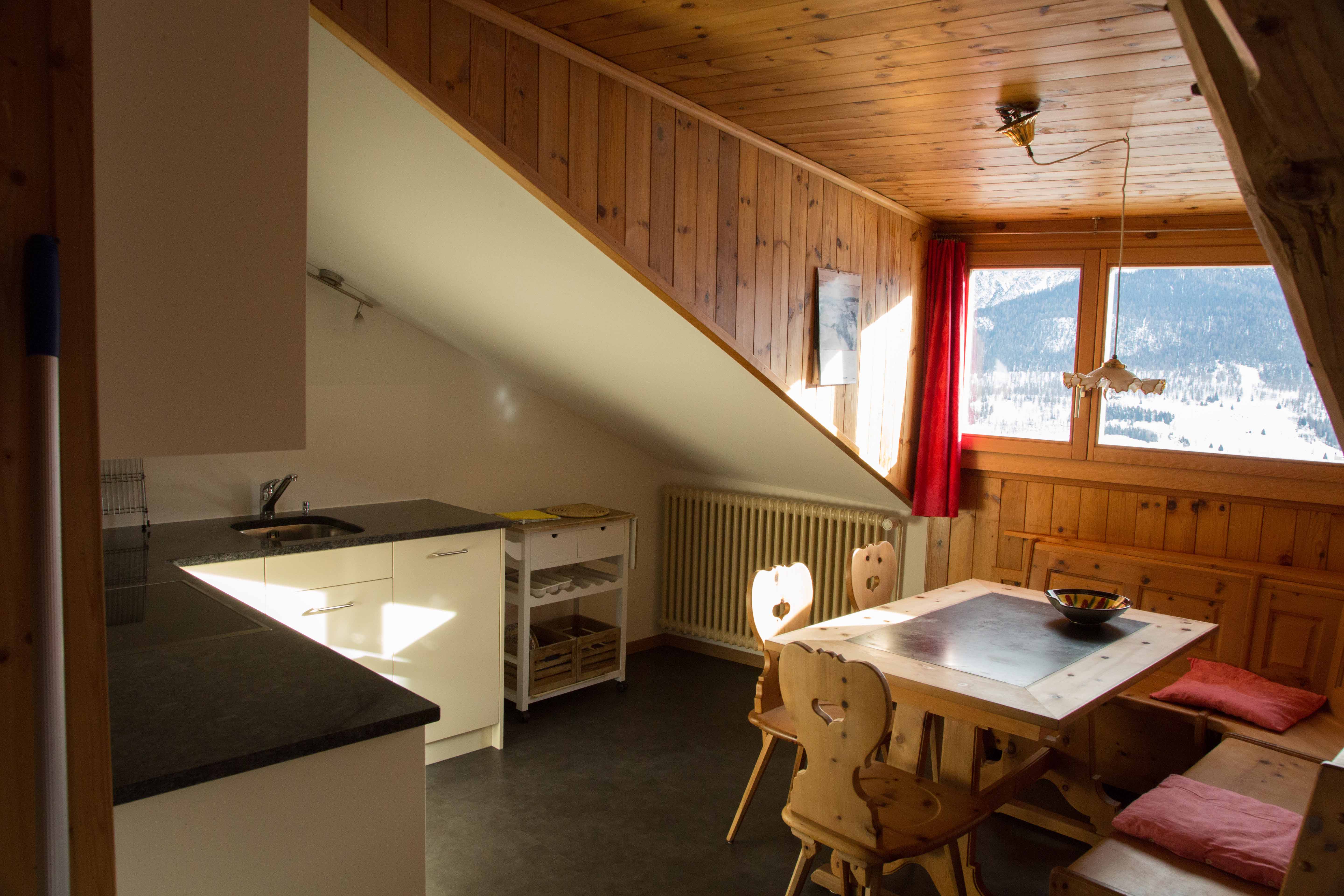The apartment is located in an Engadine style house in the 2.floor under the roof with a beautiful view of the Engadine mountains. The house is in a quiet part of the village, about 15 minutes walk distance to the chair lift, the post and tourist office. Also the supermarket is only on 10 minutes walk distance.