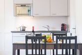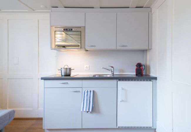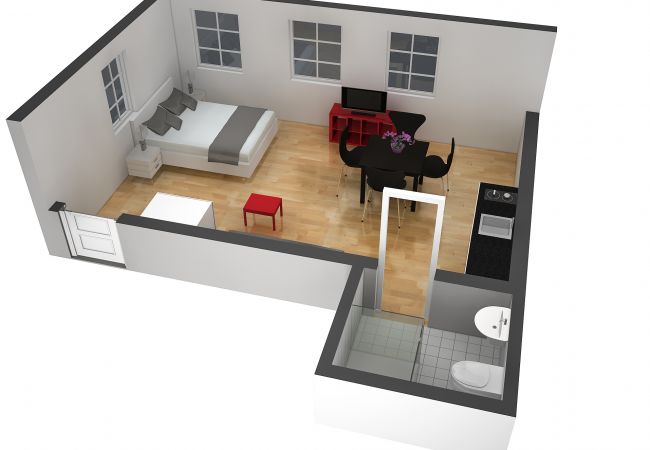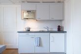 Das Studo Apartment ist komplett möbliert und besteht aus einem geräumigen Raum mit einen Doppelbett und einem Sofa mit Ausziehfunktion. Das Wohn- und Schlafzimmer hat zudem eine Sitzgelegenheit und eine voll ausgestattete Kochnische. Das Badezimmer ist ausgestattet mit einer Dusche, WC, Haartrockner und diversen Hygieneartikeln.