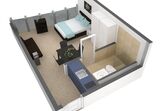 Dieses schöne und modern möblierte 1-Zimmer Apartment Bourbaki II in Luzern lässt keine Wünsche offen. Die hübsche Ferienwohnung bietet auf 25m2 Schlafplätze für insgesamt drei Personen an. Nebst einem Doppelbett steht im Studio ein Bettsofa bereit. Die möbilierte Wohnung verfügt über eine eigene kleine Küchenecke, welche mit Glaskeramikherd, Mikrowelle mit Back- und Grillfunktion, Kaffeemaschine sowie allen notwendigen Küchenutensilien ausgestattet ist. Wer eine Erfrischung braucht, kann die im Badezimmer bereitgestellten Hygieneartikel verwenden. Das Badezimmer verfügt zudem über eine Dusche, Händtücher und einen Haartrockner. Zum Waschen stehen im Erdgeschoss Waschmaschinen und Trockner zur freien Verfügung.