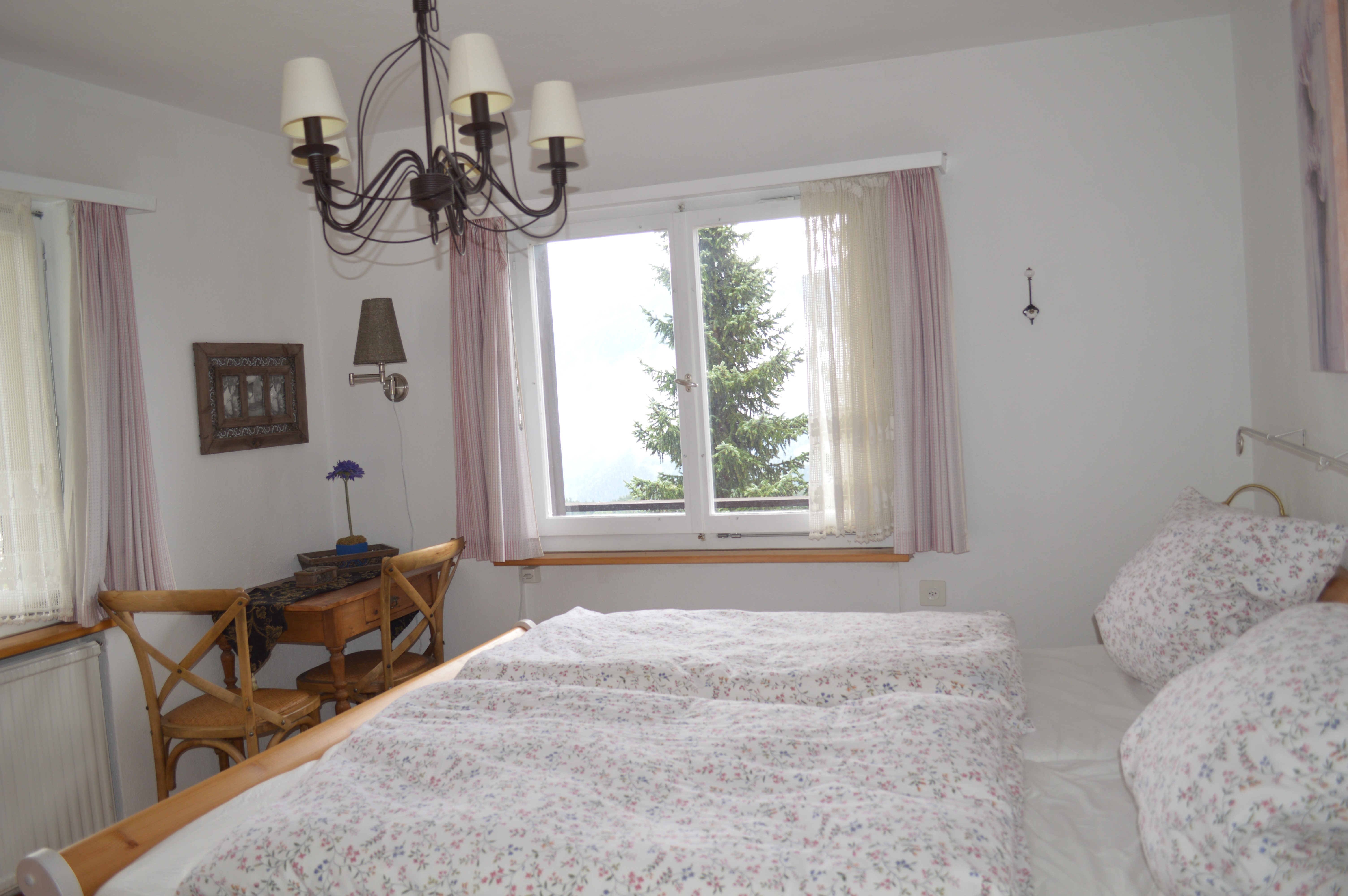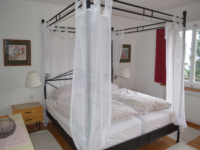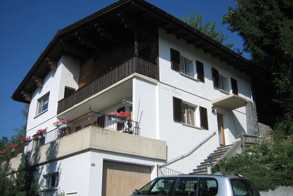 4 Zimmerwohnung, ca. 95qm (6 Betten) im Zweifamilienhaus mit herrlicher Aussicht. Postautostation ca. 150m vom Haus entfernt. Wohnzimmer mit Kamin, Balkon und Terrasse mit Sitzgelegenheit. Schlüssel im Schlüsselsafe rechts neben der Eingangstür zum Haus. Ein Garagen- und ein Stellplatz davor stehen zur Verfügung.