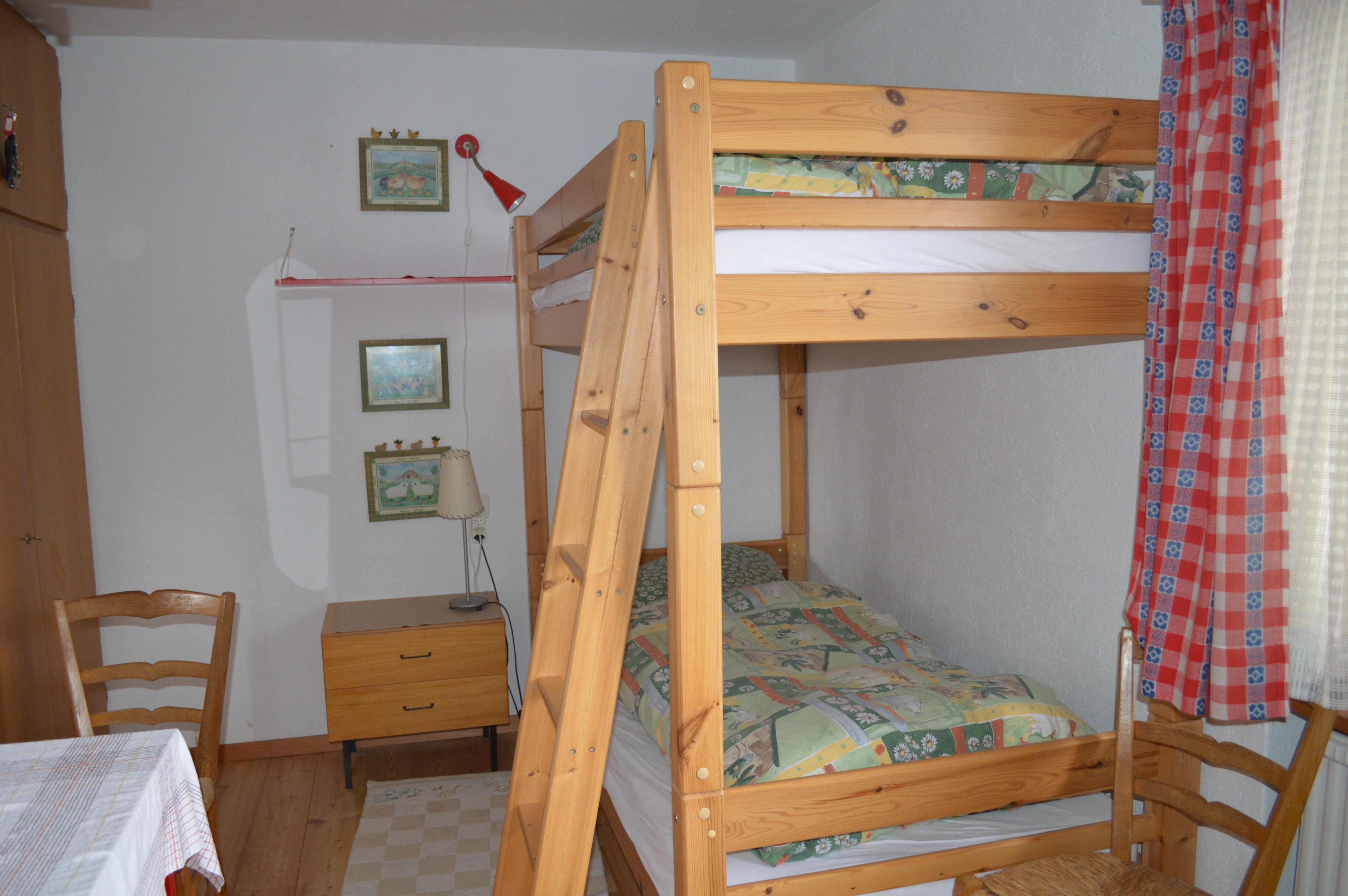 Die Wohnung hat 4 Zimmer wovon 3 Schlafzimmer sind. Zwei davon haben Doppelbetten, eines hat ein Etagenbett. Ausserdem gibt es ein Bad mit WC und ein separates WC. Im Wohnzimmer finden Sie eine grosse gemütliche Couch und Sesselecke zuzüglich einer Essecke. Der Balkon und die Terasse sind mit Balkon und Gartenstühlen versehen, von denen Sie die herrliche Aussicht geniessen können. Die Küche ist voll elektrisch und mit allen gängigen Küchengeräten ausgestattet.