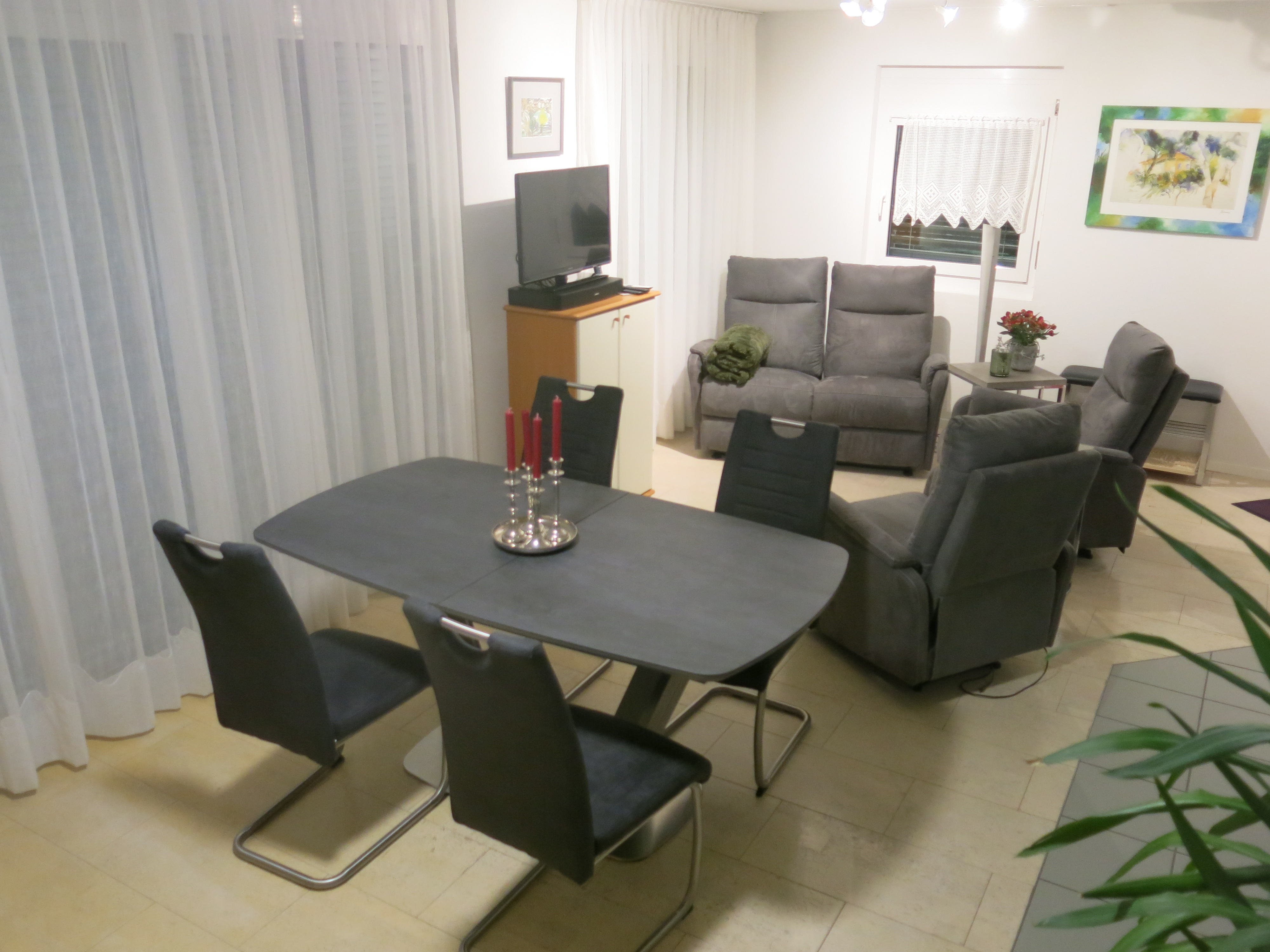 2.5 Zimmerwohnung, 54qm (4 Betten) in einem Mehrfamilienhaus. Parterrewohnung mit Südwestsicht, ruhiger Lage und separatem Eingang, Gartensitzplatz, gedeckter Parkplatz, Nähe Dorfzentrum, in unmittelbarer Nähe zum See und Hallenbad.  Bett-, Toiletten- und Küchenwäsche CHF 25.00 pro Person, Endreinigung CHF 100.00 sind im Totalpreis inbegriffen. Haustiere nicht erlaubt. Nichtraucher. Internetanschluss vorhanden.
