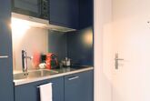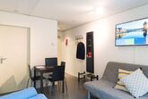 In diesem schönen und modern möblierten Studio Apartment können Sie sich so richtig entspannen. Das Apartment verfügt über ein Doppelbett und ein Schlafsofa. Ebenfalls ist eine kleine Küchenzeile vorhanden, in der Sie selber kochen können. Sie ist ausgestattet mit einer Mikrowelle, zwei Glaskeramikherdplatten, einer Kaffee-Maschine und allen notwendigen Küchenutensilien. Das zur Wohnung gehörende Badezimmer verfügt über eine Dusche, Haartrockner, Badetücher und Hygieneartikel.