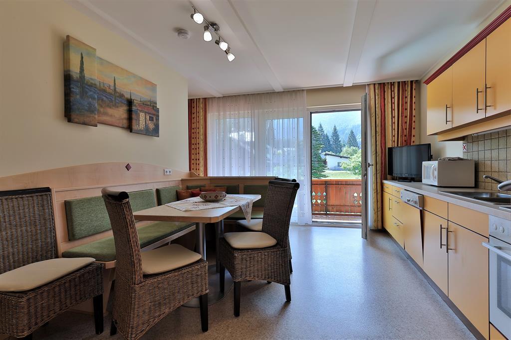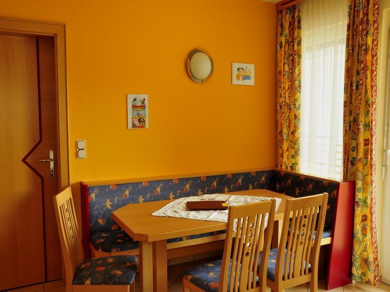 Große Wohnküche mit TV-Sat, Radio, E-Herd, Mikrowelle, Wasserkocher, Geschirrspüler, Kaffeemaschine, Besteck, Geschirr, Geschirrtücher, Spielset, Märchenbuch.