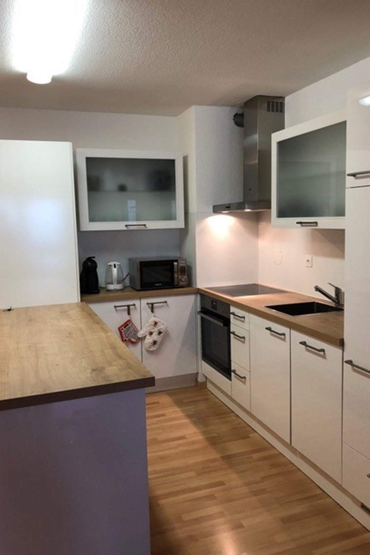 Die moderne Wohnung verfügt über Holzböden und Plattenbeläge welche ein behagliches Ambiente schaffen. Die vollumfängliche Einrichtung ist modern und gemütlich. Das Schlafzimmer verfügt über ein komfortables Boxspringbett (140cm Breite).