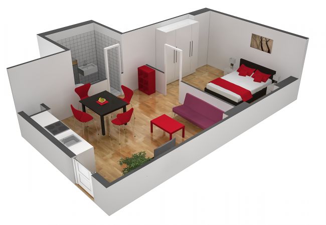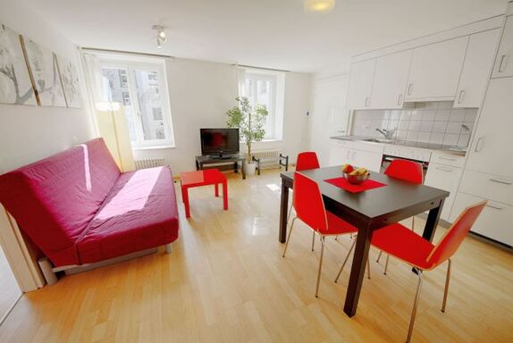 Auf 33m2 bietet dieses schöne und möblierte 2.5 Zimmer Business Apartment den höchsten Komfort an. Das helle Apartment bietet Platz für vier Personen. Im Schlafzimmer gibt es ein Doppelbett und im Wohnzimmer ein Schlafsofa für zwei Personen. Im geräumigen Wohnbereich mit offener Küche finden Sie zudem eine behagliche Sitzecke. Die Küche ist ausgestattet mit allem, was Sie zum Kochen benötigen. Natürlich gehört auch ein eigenes Badezimmer zum modernen Apartment.
