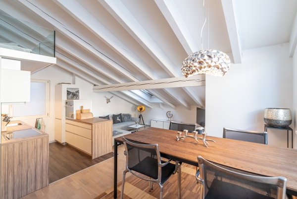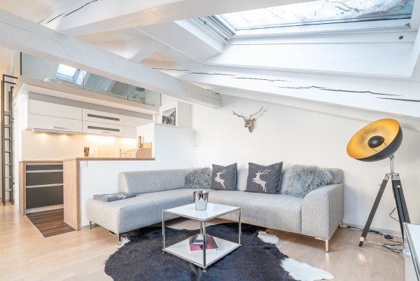 Großzügige und im Dachgeschoss gelegene 2½ Zimmerwohnung mit 50 m2 Bruttogeschossfläche für bis zu 3 Personen. Die Wohnung ist ausgestattet mit einem Doppelschlafzimmer für 2 Personen plus einer schönen Galerie mit einem Doppelbett für eine zusätzliche Person. Die Wohnung hat keinen Balkon, bietet aber eine wunderbare Aussicht über das Dorf und die Berge plus eine schöne Sicht auf das Matterhorn durch das Dachfenster oder eines der Seitenfenster. Sie ist modern ausgestattet und verfügt über ein Badezimmer und eine erstklassige Küche mit allem Komfort wie Glaskeramikkochfeld, Backofen, Geschirrspüler, Kühl- und Gefrierschrank, Nespresso Kapsel Kaffeemaschine, Toaster und Fondue Set. Für den ersten Tag der Anmietung wird ein Starterset mit Mülltüte, Kaffeekapseln, Seife und Shampoo zur Verfügung gestellt. Im Wohnraum finden Sie einen modernen Smart LCD-Fernseher mit internationalem Kabelfernsehen und DVD-Player, sowie kostenloses WLAN Internet. 1 King Size Doppelbett 180 x 200 cm
