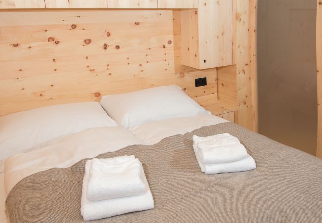 Im Obergeschoss befindet sich die Wohnküche, mit einem Holzofen und Herd. Pro Person und Tag stehen ca. 40 Liter Warm- und Kaltwasser zur Verfügung – die Menge kann gegen Aufpreis angepasst werden. Im Erdgeschoss befinden sich die zwei gemütlich eingerichteten, separaten Schlafzimmer.