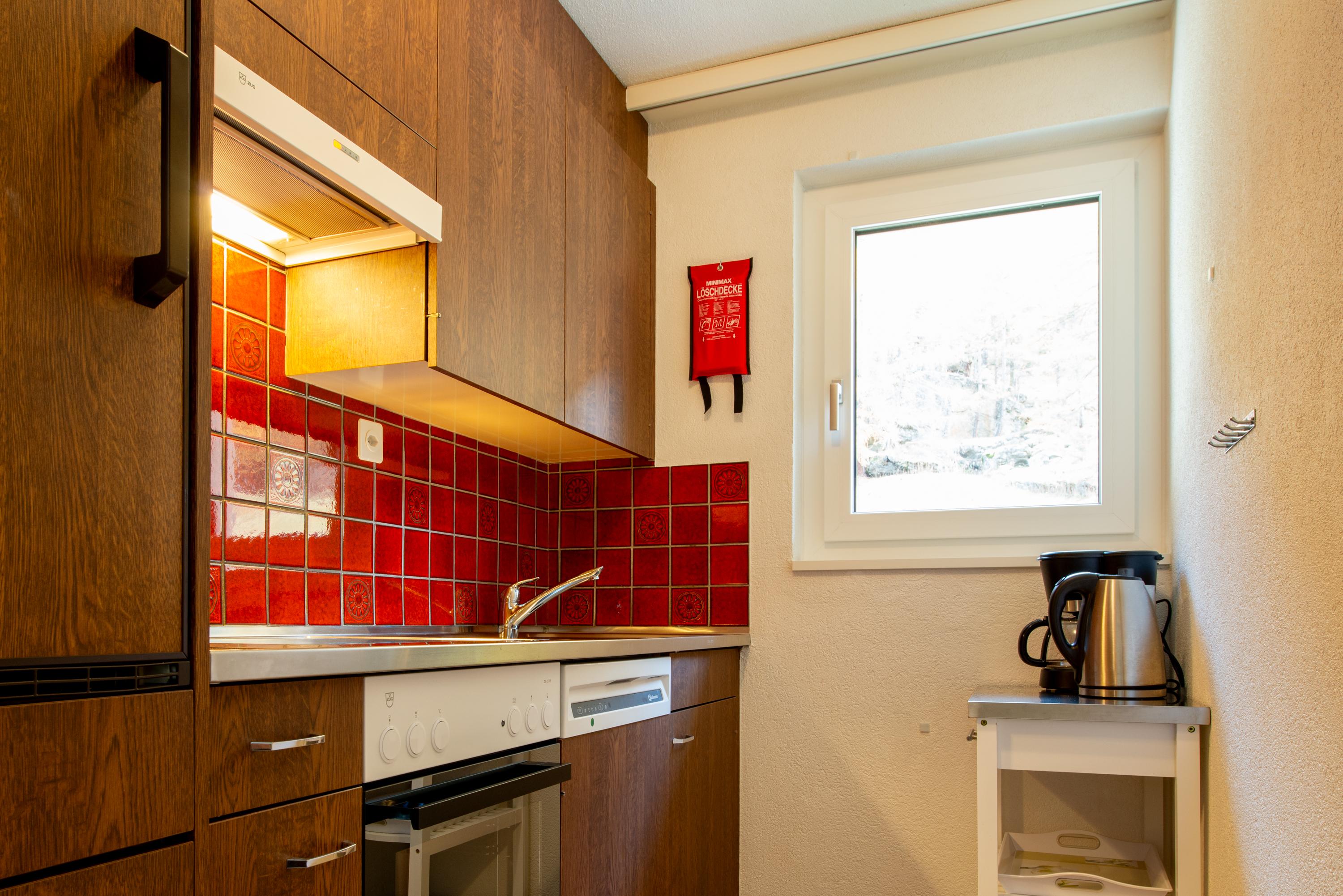 1-Zimmerwohnung, 32 m2 mit Südbalkon, grosses Wohn-/ Schlafzimmer mit Doppelbett, Digital TV und Radio, W-LAN kostenlos, Polstersesseln, offene Küche mit E-Herd, Backofen, Kühlschrank mit Gefrierfach, Filterkaffeemaschine und Wasserkocher, Esstisch. Dusche/WC. Toaster, Mixer, Fondue-Caquelon und Raclette-Tischgrill auf Wunsch erhältlich.