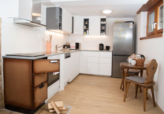 Das Haus verfügt über vier Doppelschlafzimmer, ein Wohnzimmer und zwei Küchen, drei Nasszellen. Zwei Badezimmer sind mit Dusche und WC ausgestattet und eins mit Badewanne und WC. Das eine Schlafzimmer bietet mit einer zusätzlichen Schlafcouch Übernachtungsmöglichkeit für bis zu zwei weiteren Personen, so dass insgesamt bis zu zehn Personen Platz finden. Angeschlossen sind eine Terrasse und ein Balkon. Eine Garage befindet sich vor dem Haus. Weitere Autos dürfen auf dem Öffentlichen Parkplatz (150 m entfernt) in Schmitten abgestellt werden. Die grosse Küche ist mit allem ausgestattet, was Sie für erholsame Ferien brauchen. Dazu hat es auch noch einen Holz Herd.