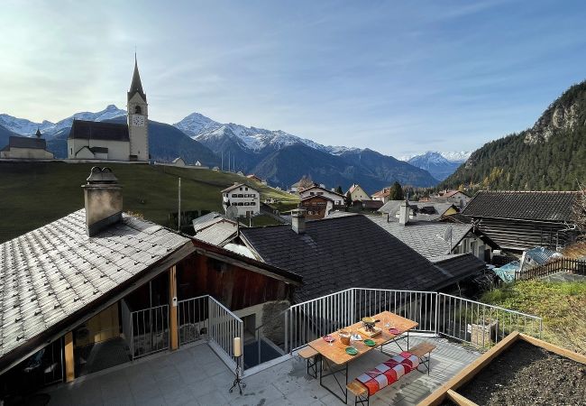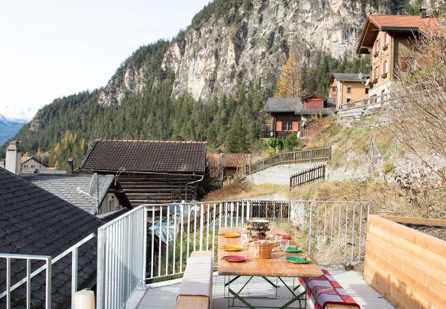 Das familienfreundliche Haus befindet sich in der Ortschaft Schmitten im Kanton Graubünden. Der Ort liegt in 1300 m Höhe an der Verbindungsstraße zwischen Davos und Lenzerheide. Das Albulatal, welches im Naturpark Parc Ela liegt, ist umrahmt von einer wunderschönen, markanten Bergwelt. Im Sommer wie im Winter gibt es vielfältige Möglichkeiten sich aktiv oder einfach in Ruhe zu erholen.