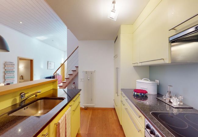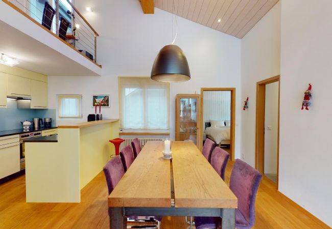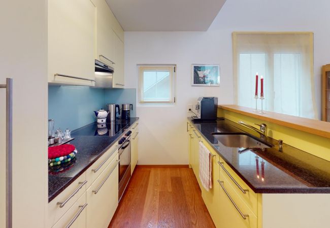 Die Wohnung ist modern möbliert. In der sehr gut ausgestatteten Küche – selbstverständlich mit Geschirrspüler, Backofen, Kaffeemaschine– finden Sie für gemütliche Abende auch ein Raclette- und Fondue-Set vor. Die Ferienwohnung bietet zwei separate Nasszellen mit Dusche und WC. Ein aussenparkplatz steht für Sie zur Verfügung.