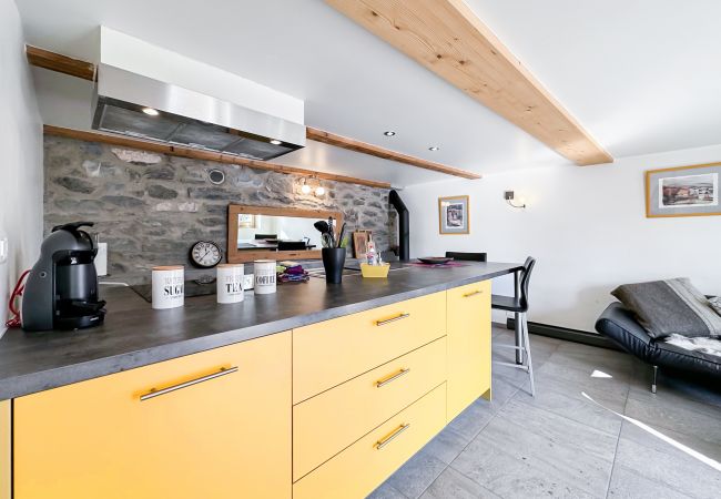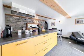 Diese Wohnung besteht aus einem herrlichen Wohnzimmer mit einer großen, voll ausgestatteten Küche und einem Holzofen für kühle Winterabende.