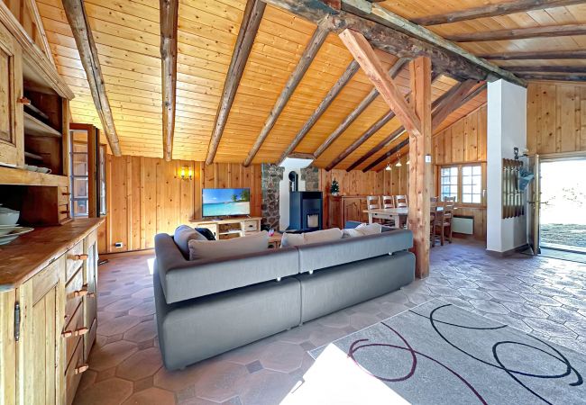 Dieser Raum mit großzügigen Volumina bietet direkten Zugang zur Terrasse für herrliche Sonnenuntergänge im Sommer.