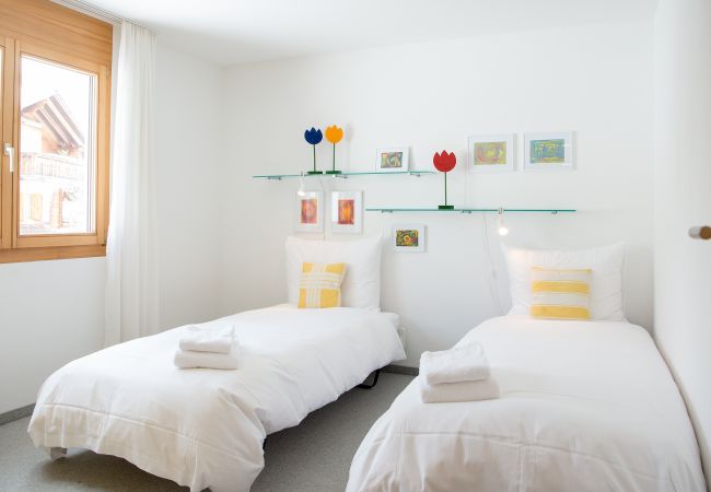 Die Wohnung bietet Platz für bis zu vier Personen und verfügt über ein Elternschlafzimmer mit Doppelbett sowie ein separates Zimmer mit zwei Einzelbetten, die bei Bedarf zusammengeschoben werden können. Für Ihren Komfort stehen Ihnen zwei stilvoll eingerichtete Badezimmer zur Verfügung: eines mit Dusche und WC, das andere mit Badewanne und WC.