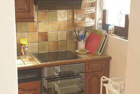 Sonstige Kücheneinrichtung (Küche1): Gut ausgestattete Küche: Geschirr, Besteck (Teller, Tassen, Gläser, Schüsseln, etc.) Pfannen, Schnellkochtopf, Töpfe, etc., Bitte Kapseln für die Nespresso Kaffeemaschine selber mit bringen.