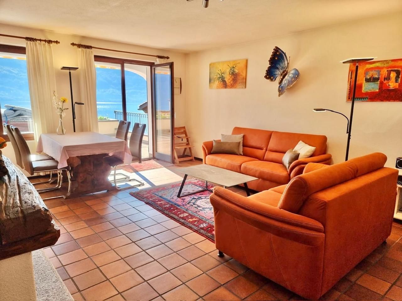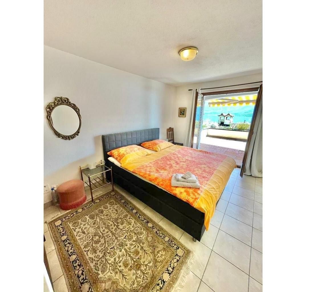 Einzigartig: Ihre Vorteile - Einfach - Gemütlich - Ruhig - Famillienfreundlich mit herrlicher Seesicht - Grosse Terrasse mit herrlicher Panorama Seesicht auf den Lago Maggiore und die umliegenden Berge- Sonnige leicht erhöhte Lage mitten in Brissago- Hallenbad und Sauna im Haus- Tiefgarage mit privatem Parkplatz Nummer C direkt neben dem Lift zur Wohnung im 4. Stock- Die Bushaltestelle und die Kursschiffanlegestelle mit Verbindung nach den Brissago Inseln, Ascona, Locarno und Italien sind nur ca. 100 Meter von der Wohnung rmation über die Wohnungseinheit-------------------------------------------------------Diese charmante und gemütlich eingerichtete 2.5 Zimmerwohnung mit der grossen möblierten Terrasse und dem wunderbaren Ausblick auf den Lago Maggiore liegt nur ca. 150 Meter von der schönen Seepromenade entfernt. Die Ferienwohnung liegt an zentraler Lage mitten in Brissago oberhalb der Hauptstrasse und ist für maximal 4 quem von der Tiefgarage aus erreicht man die Wohnungsetage über einen Lift.Das Appartement ist wie folgt aufgeteilt: Eingangsbereich mit Wandschrank, grossem Wohn- und Essbereich mit offener gut ausgestatteter Küche. Im Wohnbereich hat es ebenfalls zwei Einzelbetten. Ein Schlafzimmer mit einem Boxspring Doppelbett mit Badezimmer und WC sowie zusätzlich ein Gäste - WC im Eingangsbereich.Sowohl vom Wohnzimmer wie auch vom Schlafzimmer aus kann die Terrasse betreten werden.Ein Hallenbad mit Terrasse und eine Sauna sowie ein privater Tiefgaragenplatz Nummer C steht den Gästen zur Verfügung.Eine gemeinsame Waschküche mit Waschmaschine und Tumbler steht auf Anfrage ebenfalls zur Verfügung und ist vor Ort Kostenpflichtig.Die gemütliche Ausstattung und die zentrale Lage bieten beste Bedingungen für herrlich entspannte issago und Umgebung-------------------------------------Das Dorfzentrum mit seinen Läden, Post, Bank, Restaurants, Cafes, etc. sind von der Ferienwohnung zu Fuss in ein paar Gehminuten erreichbar, ebenso die Bushaltestelle und die Kursschiffsanlegestelle von wo Sie Verbindung zu den Brissago Inseln, Ascona, Locarno und der gegenüberliegenden Riviera del Gambarogno haben sowie auch zu allen anderen Schiffsanlegestellen in Italien wie zum Beispiel Cannobio, Stresa, etc. Den Lido von Brissago erreichen Sie ebenfalls in wenigen Minuten zu Fuss. Das Strandbad mit Seeanschluss, Schwimmbecken, Wasserrutsche und Restaurant ist sehr gepflegt und Famillienfreundlich. Die Wasserrutsche ist mit 75 Metern Länge die längste vom ganzen Tessin. Ein Besuch in diesem Lido lohnt sich. Der benachbarte Grenzort Cannobio, wo am Sonntag der berühmte Mercato stattfindet, ist nur wenige Kilometer entfernt. Auch die Tessiner Täler Valle Maggia, das Valle Verzasca oder das Centovalli sind von hier aus mit dem Auto gut zu erreichen.Weitere Aktivitäten und Erlebnisse in der Region sind:- Camelie Park Locarno, Moon & Stars Festival, Locarno Film Festival, Jazz Ascona, etc. - Sport Aktivitäten wie: Mountainbike, Velotouren, Schwimmen, Tennis, Wandern, Wassersport, tails zur Wohnungseinheit-------------------------------------------- 2.5 Zimmer Wohnung, 4. Stock (Lift)- Für maximal 4 Personen- Panoramablick auf See und Berge- Grosszügige Terrasse mit toller Seesicht, möbliert mit Tisch und 4 Stühlen und 2 Liegebetten, Wäschekleiderständer sowie Blumentrögen- Helles Wohn- und Esszimmer mit Panoramafenstern und Ausgang zur Terrasse- Zwei Sofa ( 3 ER und 2.5 ER) und Salontisch- Esstisch mit 4 Stühlen- 1 Kinderstuhl- Satelliten TV- zwei Einzelbetten (90 cm x 200 cm) mit Nachtisch und Stuhl im Wohnbereich- 1 Schlafzimmer mit Boxspring Doppelbett (180 cm x 200 cm), 2 Nachttische, Kleiderschrank, Spiegel, 1 Hocker und 1 Stuhl.Das Schlafzimmer hat ebenfalls ein Ausgang zur Terrasse.- 1 Badezimmer mit Badewanne/Dusche mit Lavabo und WC mit Ausgang in das Schlafzimmer. Ein Haartrockner und eine Personenwaage stehen ebenfalls zur Verfügung. - 1 separates Gäste WC mit Lavabo im Eingangsbereich der Wohnung- Kleine gut ausgestattete Küche mit:- Glaskeramik Kochherd mit Heissluft/Umluft Backofen- Kühlschrank mit kleinem Gefrierfach- Geschirrspüler - Nespresso Kaffeemaschine, Kapseln bitte selbst mitbringen- 1 Privat Parkplatz Nr. C in der Tiefgarage im Haus direkt neben dem Lift zur Wohnung- Hallenbad und Sauna im Haus zur Mitbenützung - Starter Kit: Seife/Gel, Toilettenpapier, Wasch Tab für Geschirrspüler und Abfallsack wird bereit gestellt.