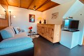 Das Ferienhaus ist sehr heimelig mit viel Holz eingerichtet und bietet Platz für bis zu 6 Personen. Die Schlafzimmer sind mit einem Parkettboden ausgestattet. Im Ferienhaus befindet sich ein TV, auch kostenloses WLAN ist vorhanden.