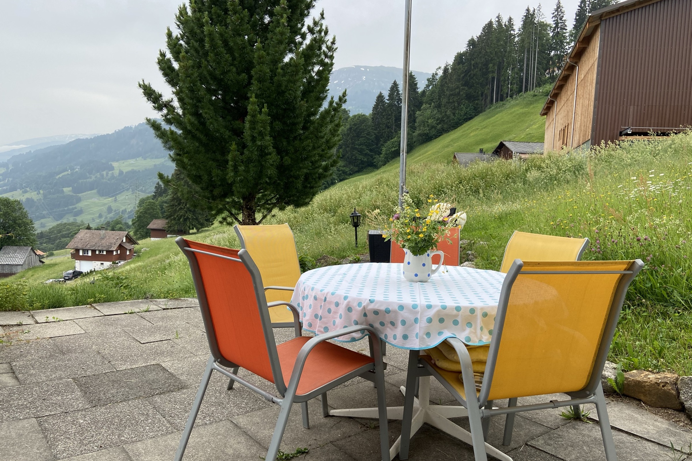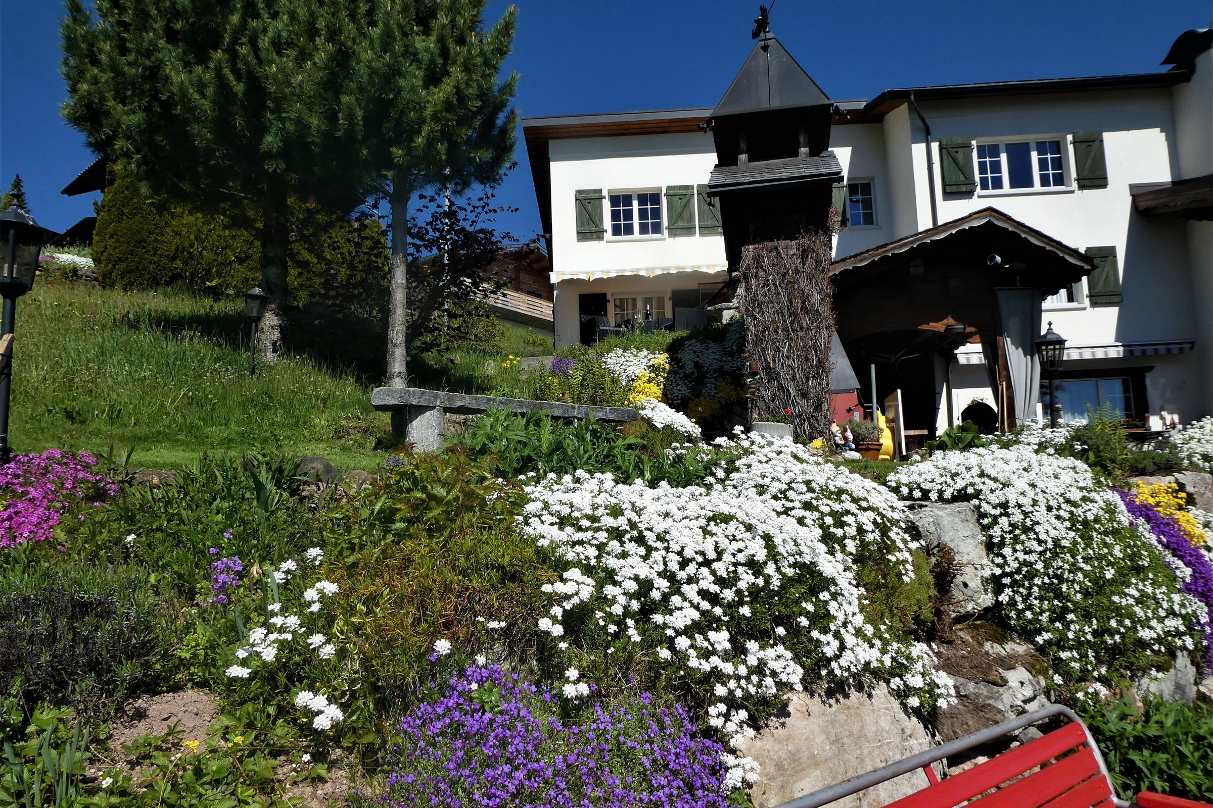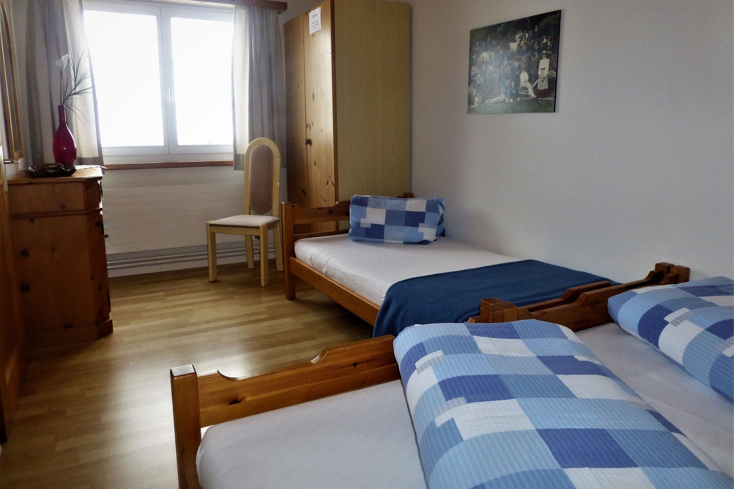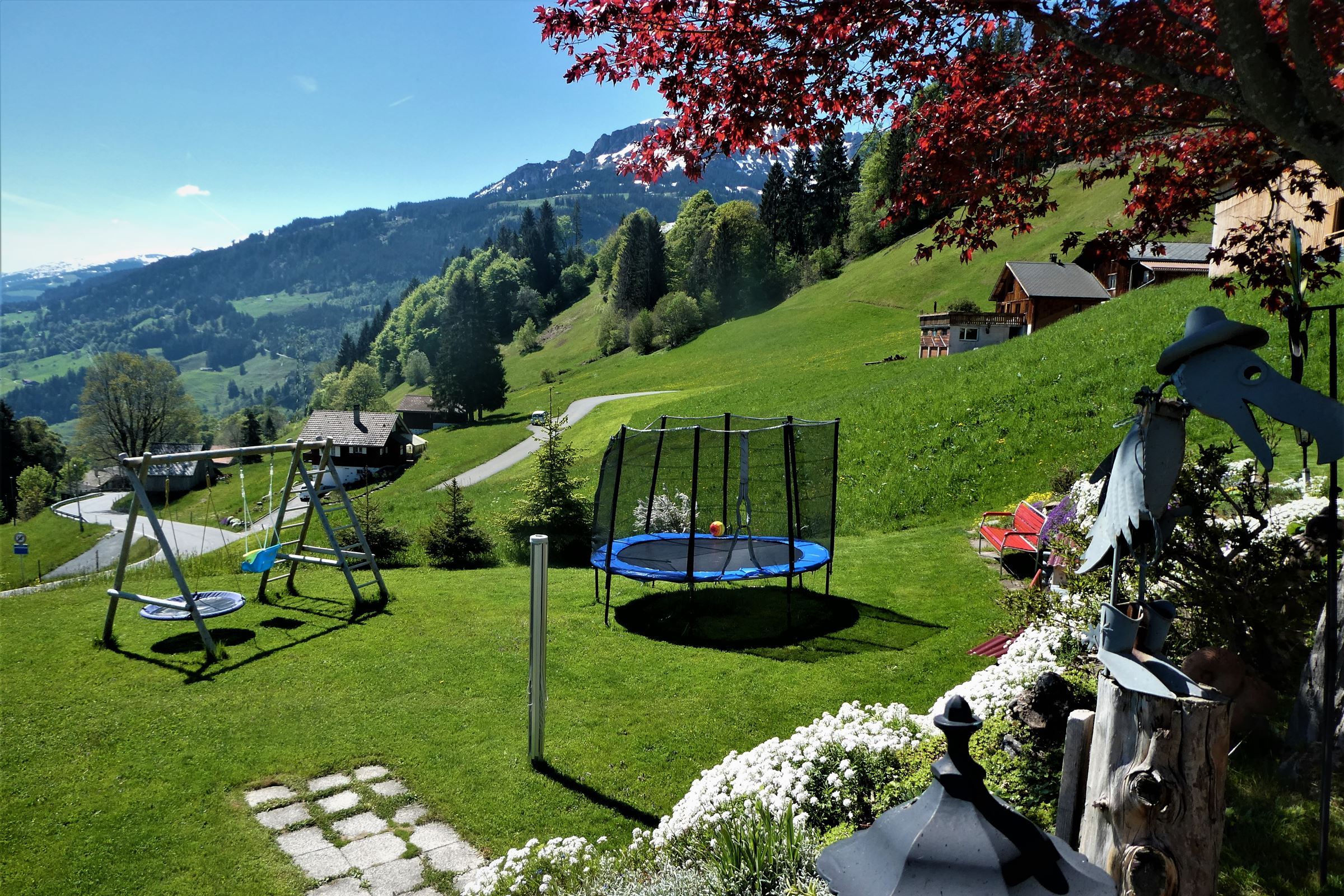 Die im Frühling 2021 neurenovierte, komfortable und liebevoll mit viel Holz eingerichtete Wohnung ist für 2-5 Personen geeignet. Das Wohnzimmer verfügt über eine grosszügige Eckbank mit Tisch und Stühlen, gemütlichem Sofa, Sessel, TV und gratis WLAN. Die erstklassige Küche ist aus hochwertigem Material und mit Geschirrspüler, grossem Kühlschrank, Backofen und alles was man braucht ausgerüstet. Die Dusche/WC ist praktisch, hell, mit Spiegelkasten, Föhn und Handtuchwärmer versehen. In der ersten Etage befindet sich das Zwei- und Dreibett-Schlafzimmer mit Kasten und Kommode. Der Sitzplatz, mit herrlicher Aussicht ist ebenerdig vom Wohnzimmer. Es stehen ein Gartentisch mit Stühlen, Grill, eine Lounge, Liegestühle und Sonnenschirme zur Verfügung. Auf der grossen Spielwiese gibt es ein Trampolin und eine Schaukel für Freude der Kinder. Gratiseintritte ins Hallenbad. Gratisparkplatz und Einstellraum für Bikes, Ski, Kinderwagen, etc. ist vorhanden. Im Winter ist die Sportbushaltestelle nur 100m entfernt, der Bus ist kostenlos. Zu den Bergbahnen sind es ca. 300m. Schlafzimmer