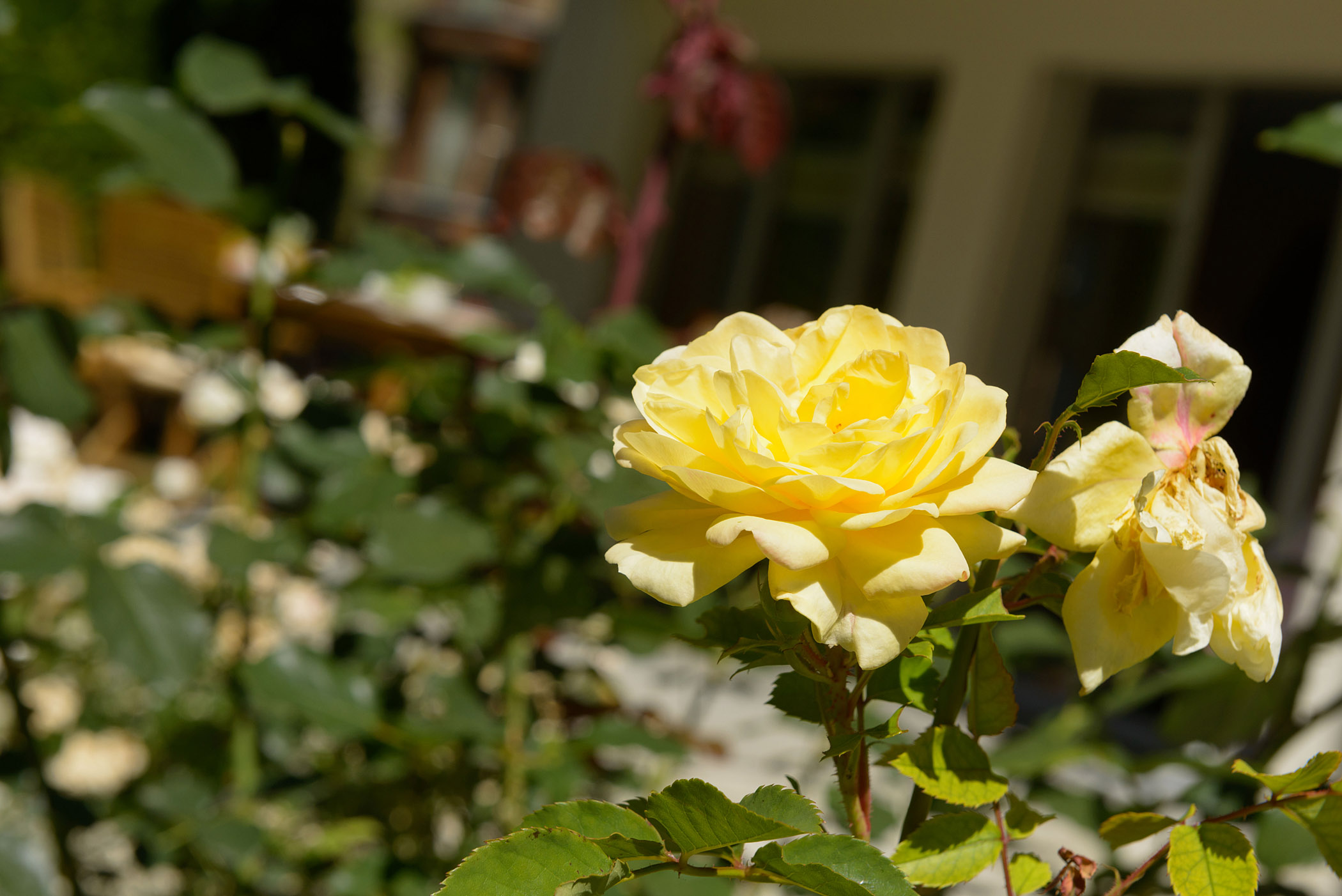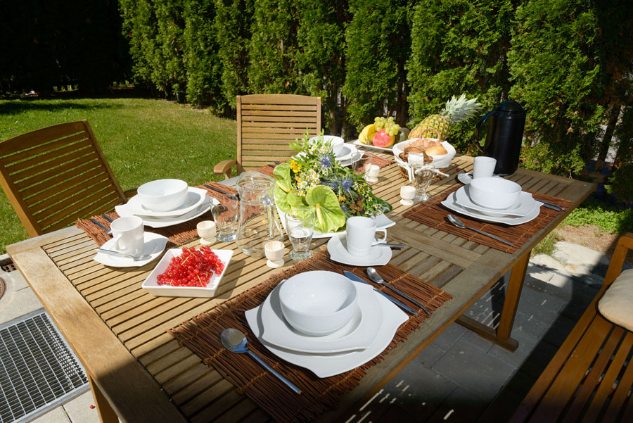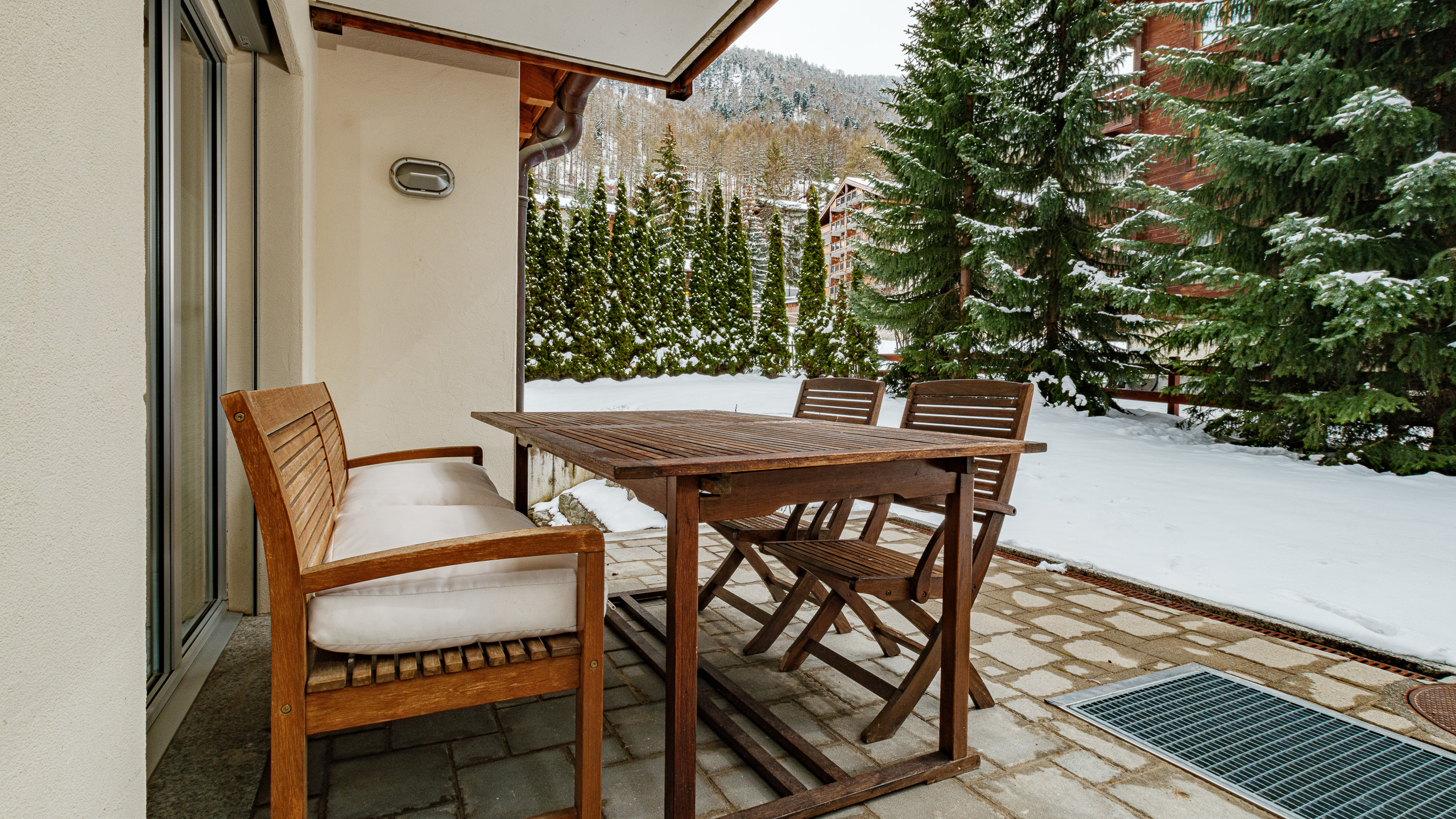 Terrasse mit Gartenmöbeln und Teil-Matterhornsicht