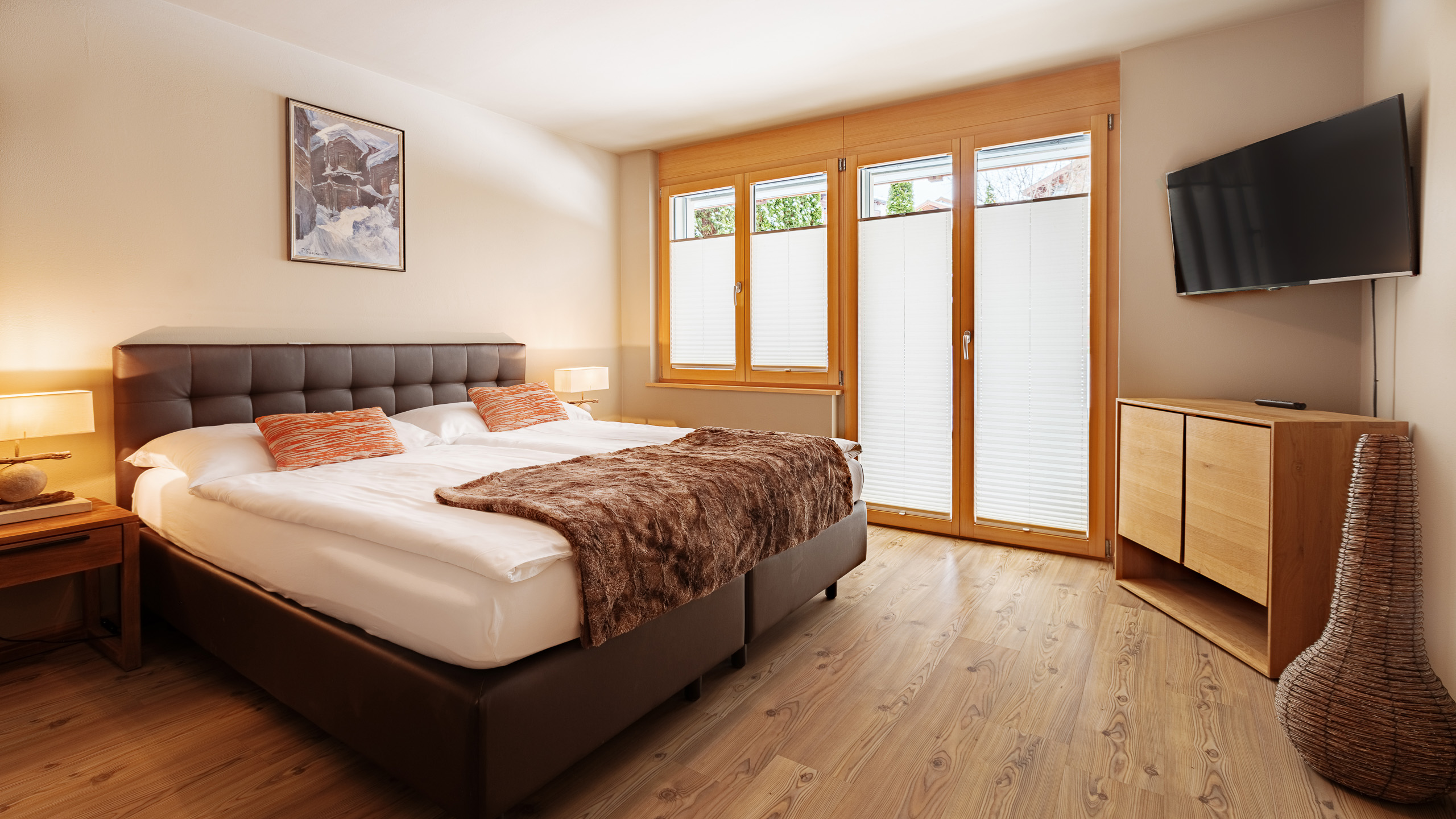 Großzügige 4 1/2 Zimmerwohnung mit 120 m2 Wohnfläche, drei Doppelschlafzimmer für 6 Personen. Das Apartment ist modern ausgestattet und verfügt über zwei Badezimmer (DU/WC und Bad/WC).