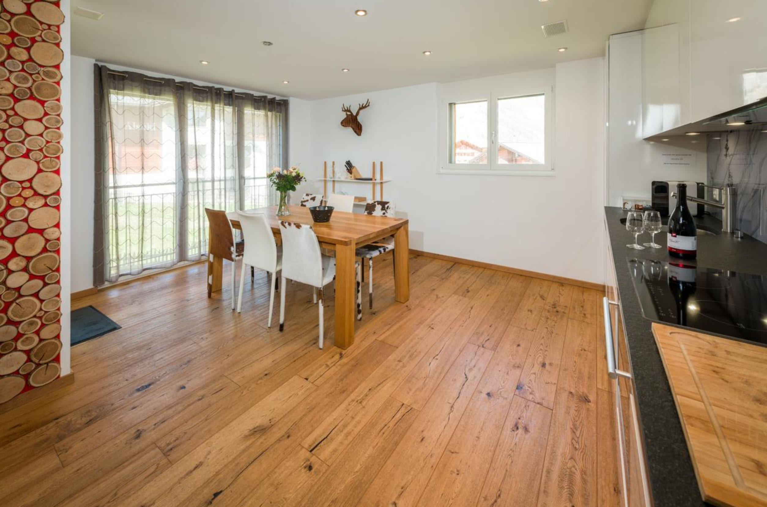 Die 120 m2 grosse 4 ½ Zimmer Wohnung hat 3 Schlafzimmer und ist ausgelegt für 6 Personen. Sie ist modern ausgestattet und verfügt über zwei Badezimmer (DU/WC und Bad/WC), eine offene vollausgestattete Küche mit allem Komfort wie Glaskeramikkochfeld, Backofen, Geschirrspüler, Kühl- plus Gefrierschrank, Delizio Kapsel Kaffeemaschine, Toaster und Fonduegeschirr.