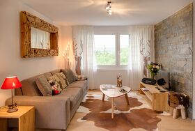 Großzügige 2½ Zimmerwohnung mit 66 m2 Bruttogeschossfläche und einem Doppelschlafzimmer für 2 Personen plus Schlafsofa im Wohnbereich. Die Wohnung ist modern ausgestattet und verfügt über einen Balkon, ein Badezimmer und eine erstklassige Küche mit allem Komfort wie Glaskeramikkochfeld, Backofen, Geschirrspüler, Kühl- und Gefrierschrank, Delizio Kapsel Kaffeemaschine, Toaster und Fonduegeschirr.