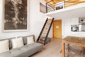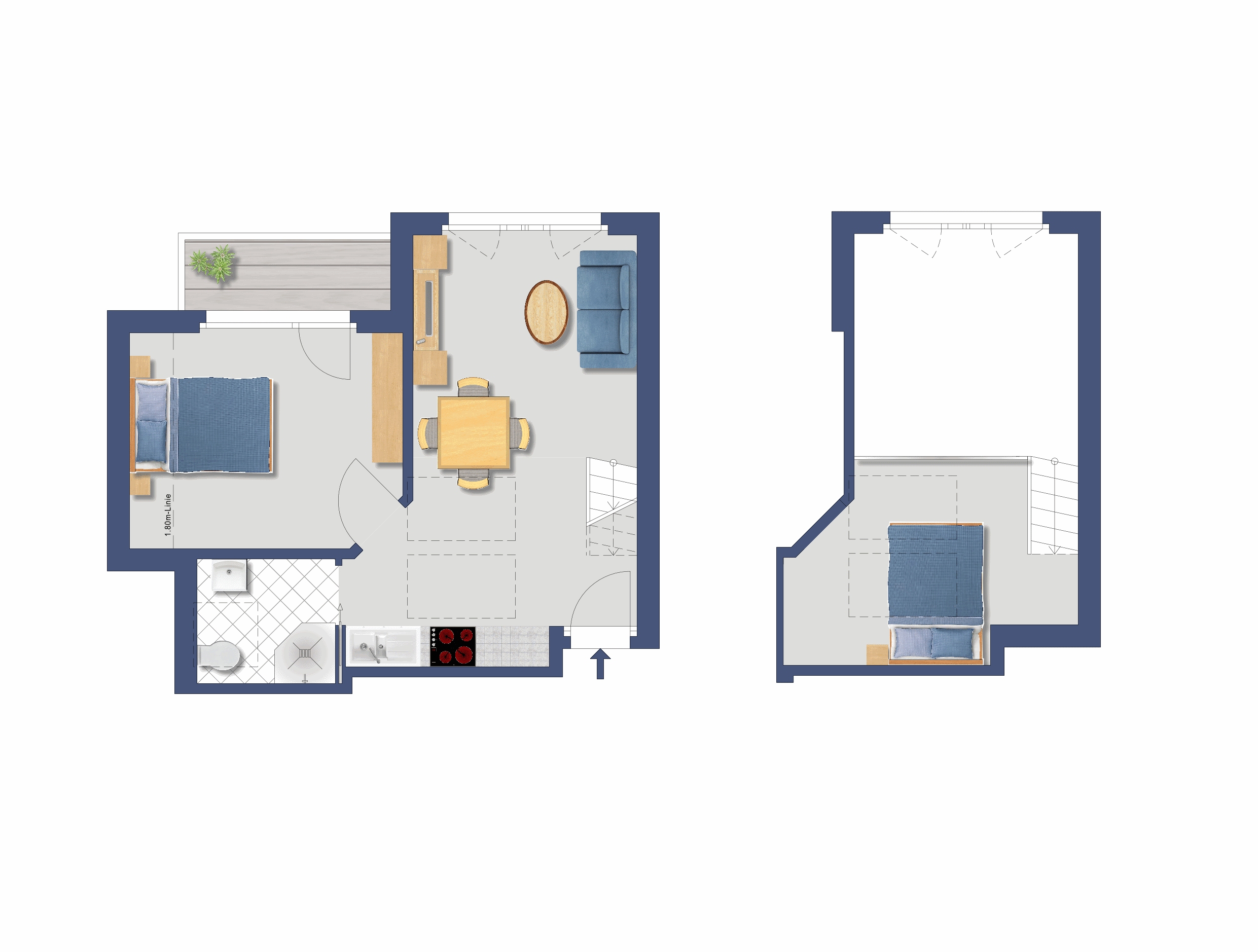 Großzügige und im Dachgeschoss gelegene 2½ Zimmerwohnung mit 54 m2 Bruttogeschossfläche für bis zu 3 Personen. Die Wohnung ist ausgestattet mit einem Doppelschlafzimmer für 2 Personen, sowie einer schönen Galerie mit einem Doppelbett für 1 Personen. Die Wohnung hat einen Balkon und bietet eine wunderbare Aussicht über das Dorf und die Berge. Sie ist modern ausgestattet und verfügt über ein Badezimmer und eine erstklassige Küche mit allem Komfort wie Glaskeramikkochfeld, Backofen, Geschirrspüler, Kühl- und Gefrierschrank, Delizio Kapsel Kaffeemaschine, Toaster und Fondue.