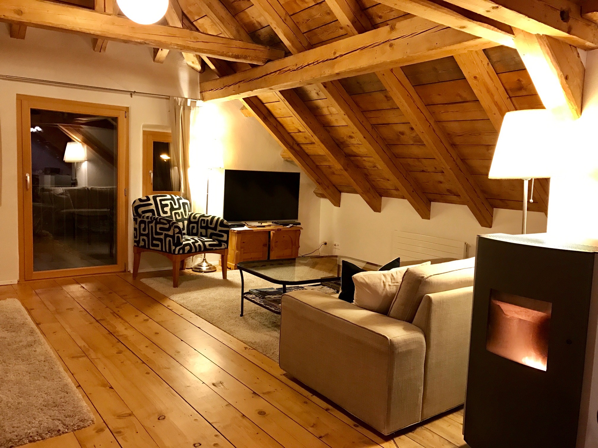 Chasa d' Uina liegt im idyllischen Dorf Sent, oberhalb Scuol, im Unterengadin. Die tolle neue, gemütliche Dachwohnung hat 2.5 Schlafzimmer (maximal 6 Personen), 2 Schlafzimmer mit je 2 Einzelbetten und ein Buero/Schlafzimmer mit Doppelbett, ein Badezimmer mit Badewanne. Das dritte Schlafzimmer/Buero ist ein Durchganszimmer. Die sonnige Wohnung erhält das schöne alte Gebälk, hat aber ein neu isoliertes Dach mit grossen Dachlukarnen. Geniessen Sie das schöne, grosszügige Wohn/Esszimmer mit Pellet Cheminée und spektakulärem Blick gegen Osten und Sueden auf die Engadiner Dolomiten . Die moderne Küche mit Granitplatte hat Geschirrspüler, grossen Kuehlschrank, Ceran Kochfeld mit modernem Ofen. Nespresso Kaffeemaschine, Fondue und Raclette Geschirr sind auch vorhanden. Die Wohnung hat TV und DVD und kabelfreies Internet. Der öffentliche Parkplatz ist 100 vom Haus entfernt, (Fr.25.- pro Woche) Im Winter liegt Sent an der sogenannten “Traumpiste”, mit direkter Abfahrt vom Skigebiet Scoul. Am Morgen fährt der Skibus 50m vom Haus an die Talstation Scuol. Im Sommer und Herbst ist Sent Ausgangspunkt zu unzähligen tollen Touren, Spaziergängen und Mountainbike rides. Von Frühling bis Herbst lädt auf der geschützten Nordseite des Hauses ein schöner Gartensitzplatz.