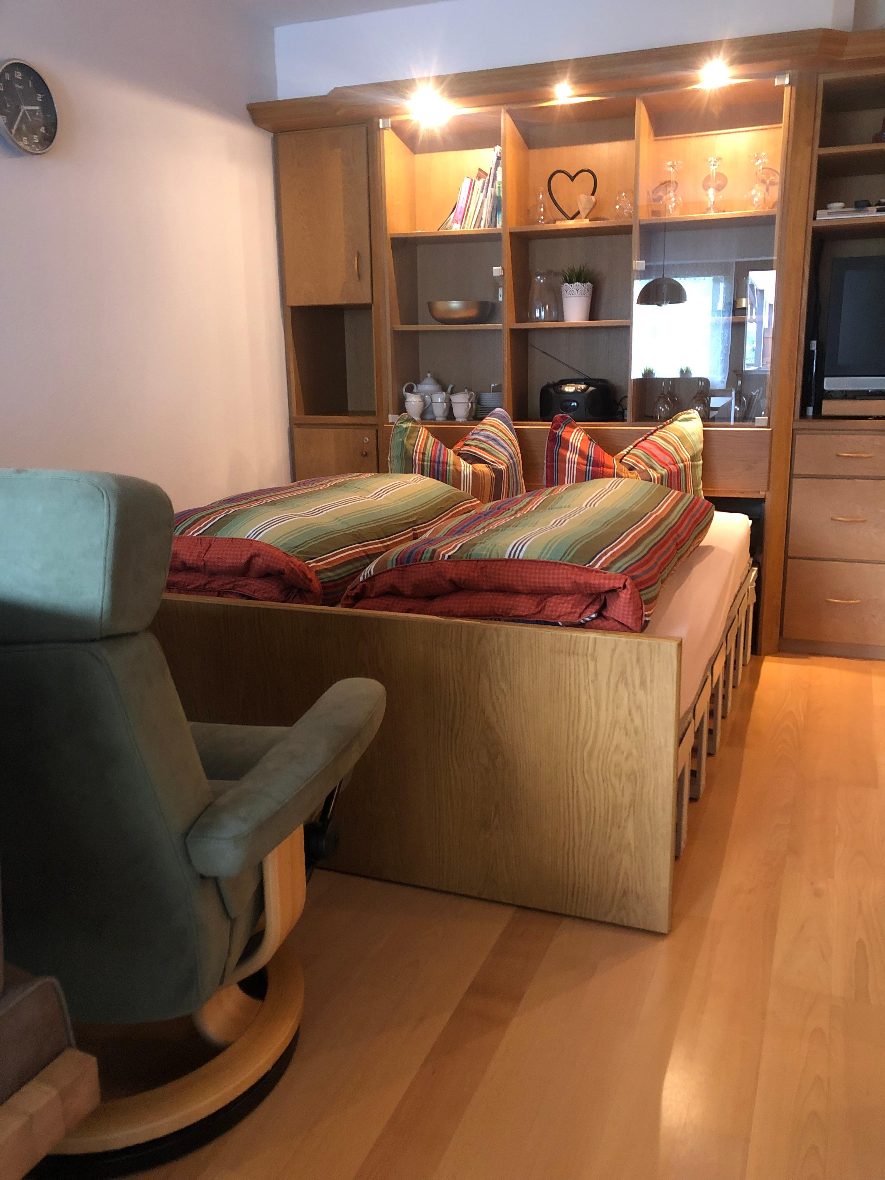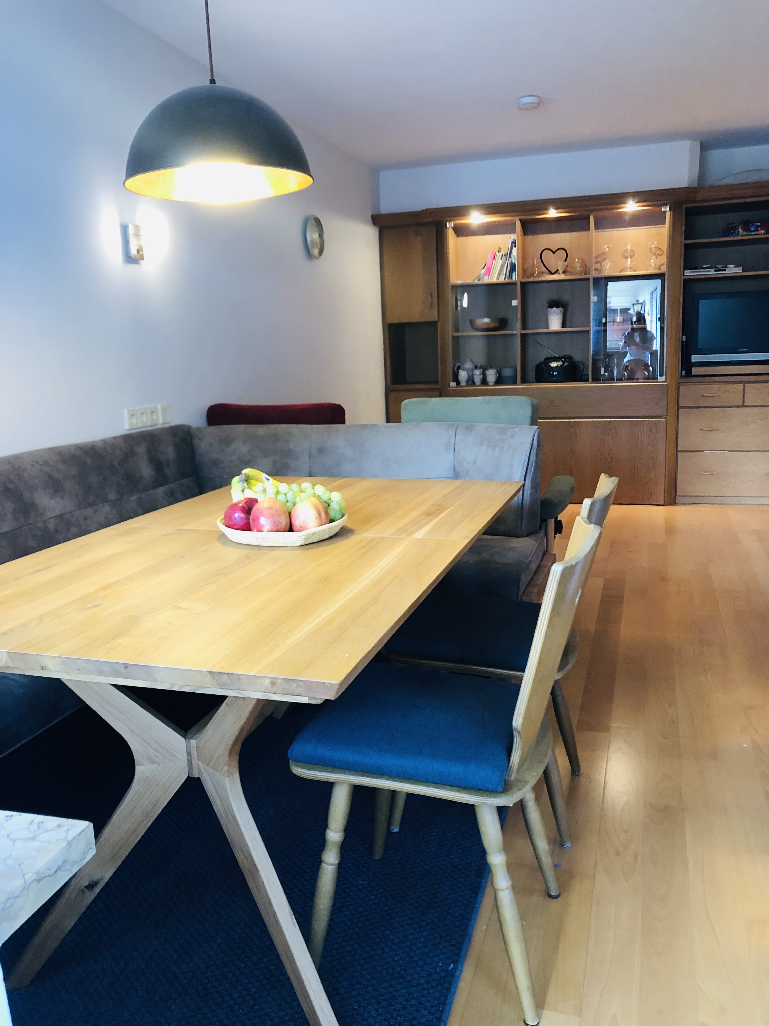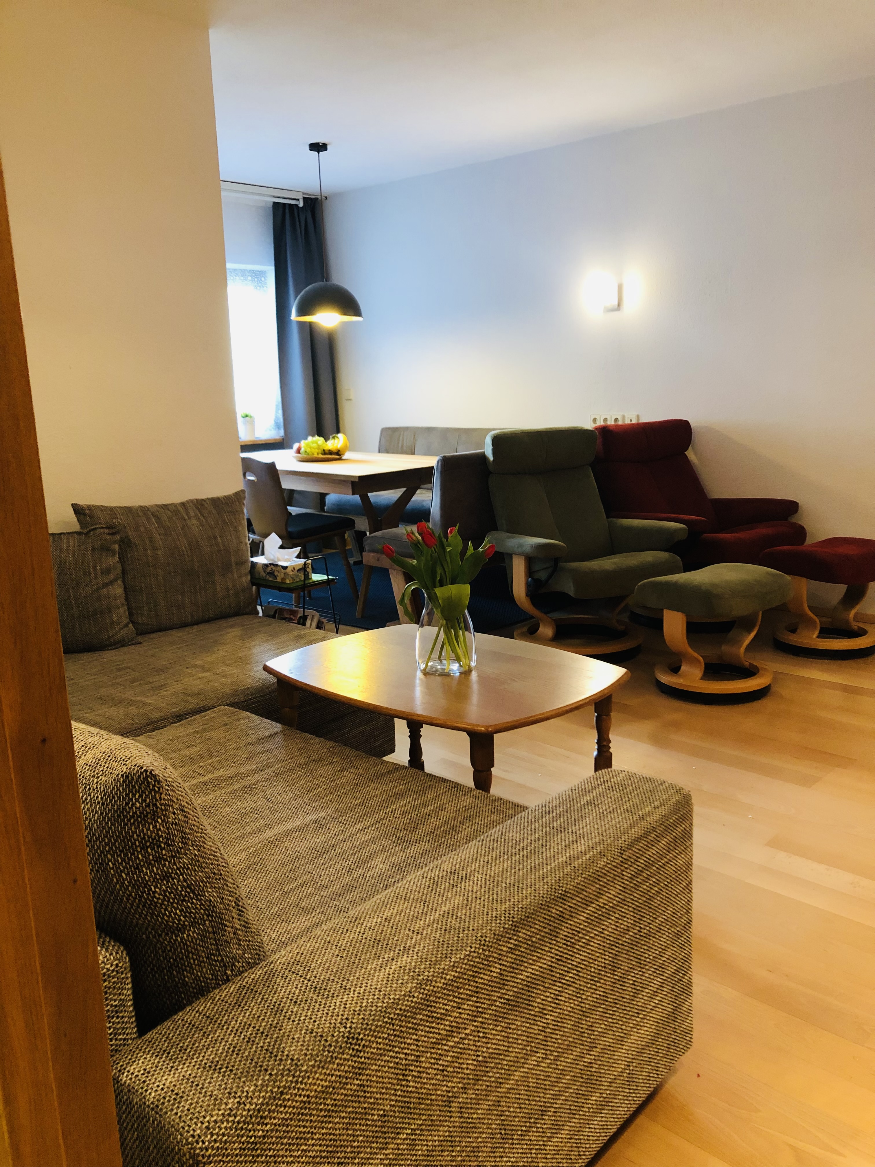 Liebevoll eingerichtete Ferienwohnung mit allem was Sie in Ihrem Urlaub zum enstpannen brauchen. Frühstücken Sie auf dem Balkon und genießen Sie die Ruhe der Natur und das sanfte Rauschen der Lofer. Nach einem der verschiedenen Ausflüge lassen Sie den Tag bei gemütlichem Kerzenschein auf dem Sofa ausklingen. Die Ferienwohnung verfügt über eine schönes Schlafzimmer mit großem Doppelbett, über einen Flachbildschirm (Smart TV), kleinem Schreibtisch sowie genügend Platz und Stauraum für alles was Sie in Ihrem Urlaub brauchen. Im Wohnraum gibt es weitere Übernachtungsmöglichkeiten, entweder über ein elektrisch herrausfahrbares französisches Doppelbett, oder Sie nutzen das bequeme Sofa mit Schlaffunktion. Ein Parkplatz direkt vor der Tür, sowie ein Ski/Schlitten Keller stehen unseren Gästen frei zur Verfügung.