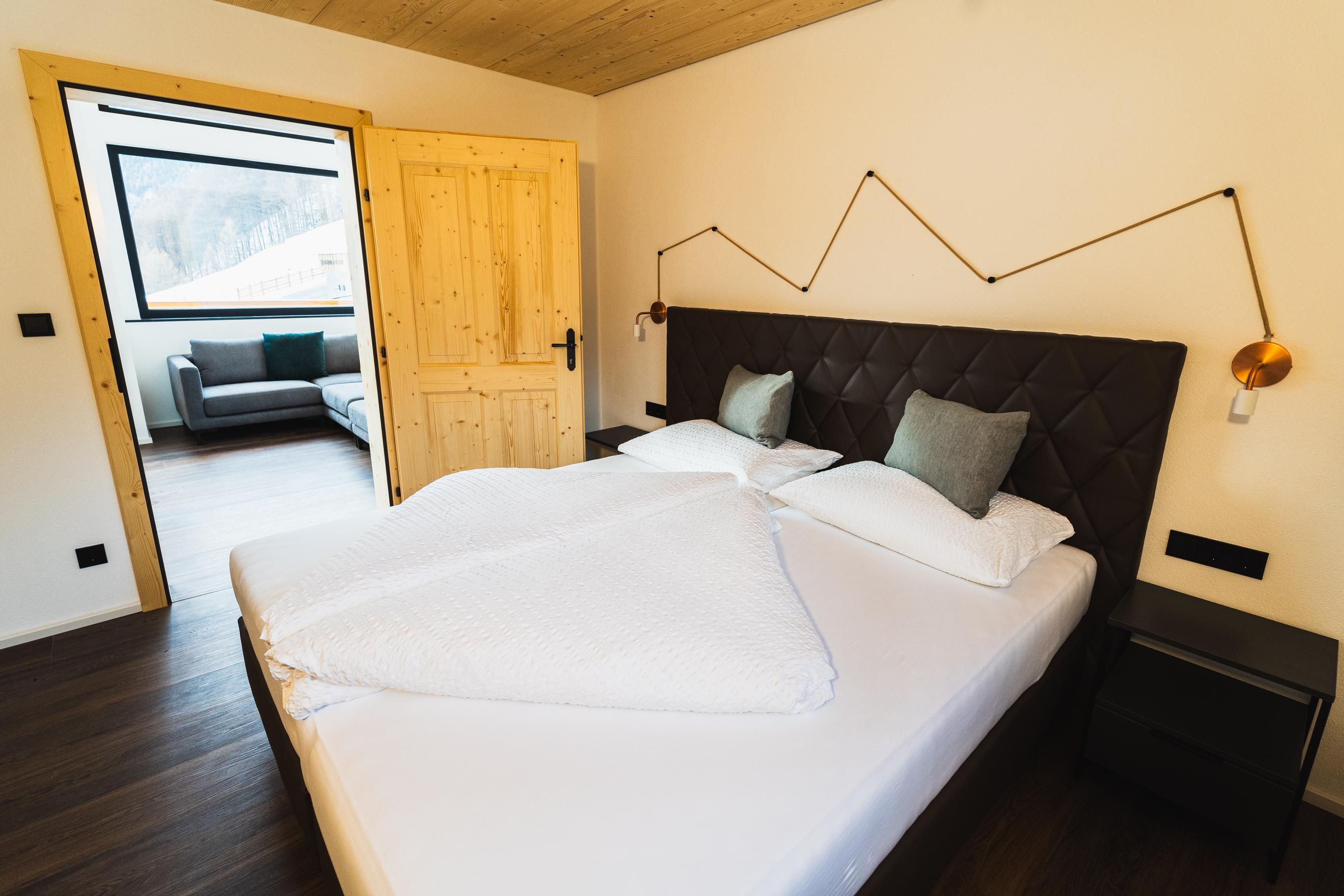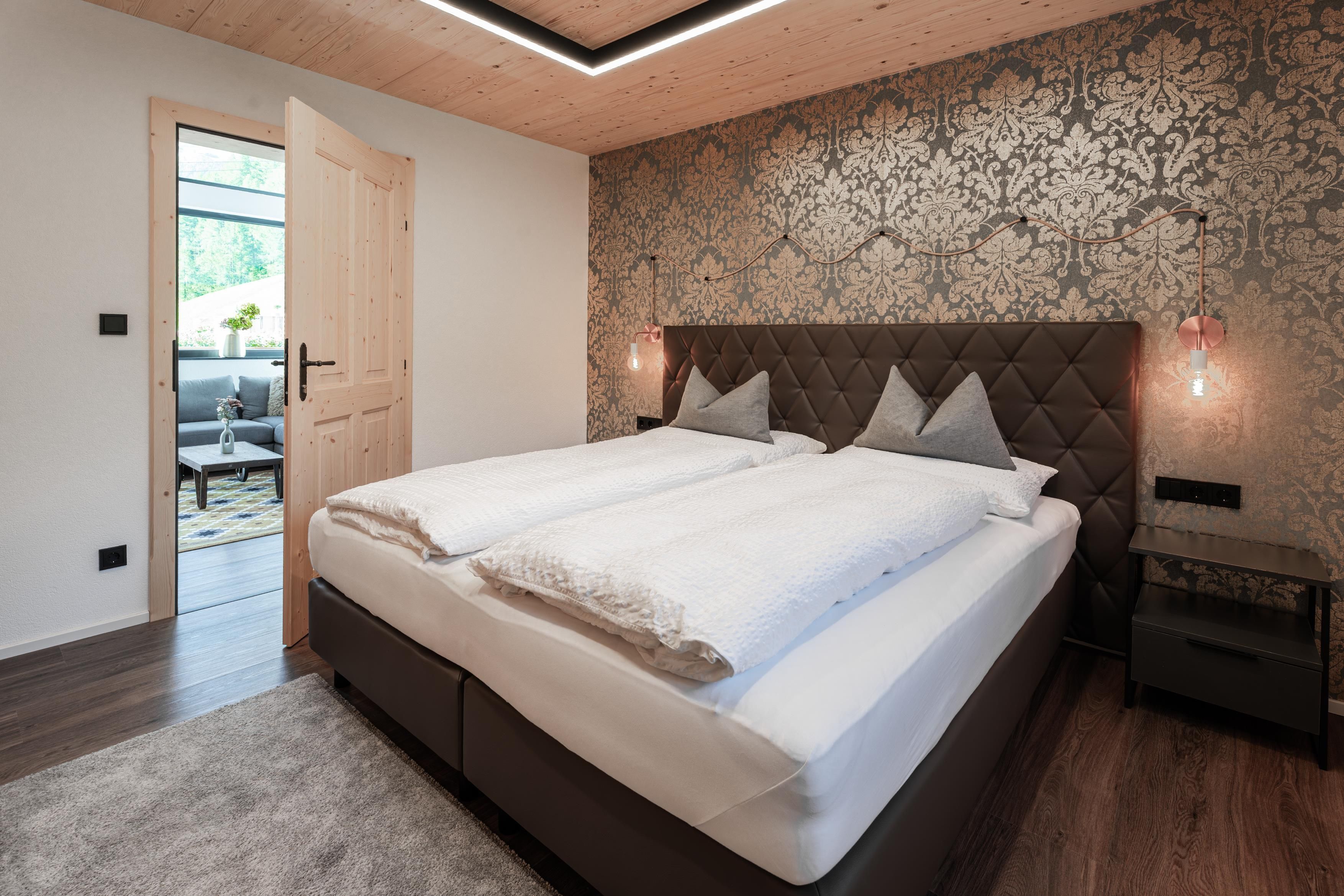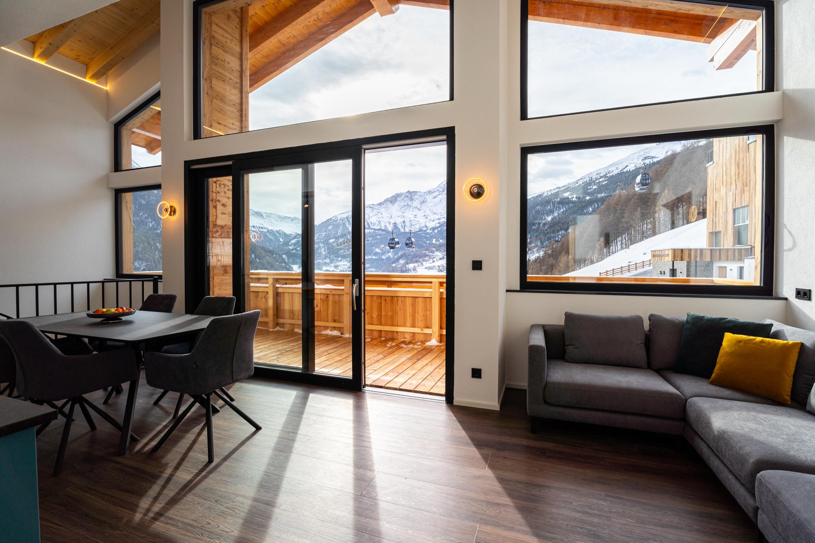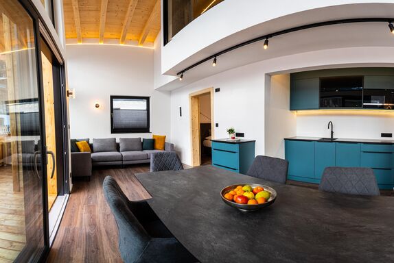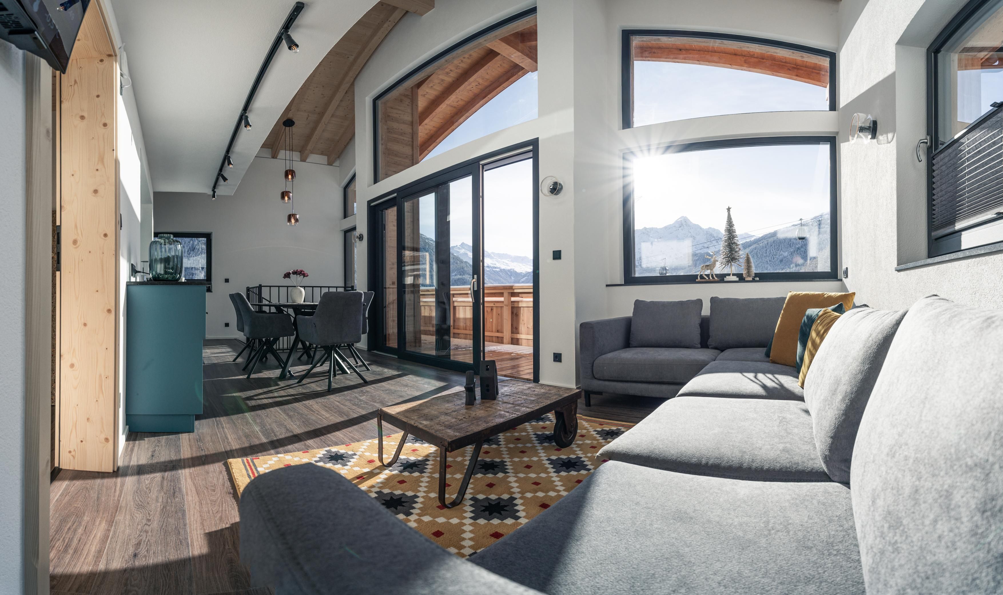 Zirka 150 m² zur alleinigen Nutzung, modern & hell – das ist unser Selda Chalet. Highlight ist das Schlafzimmer in der Galerie. Es besteht aus einem Zirben-Doppelbett und einem großen und gemütlichen Schlafsofa. Weiters gibt es noch ein Doppelzimmer, eine vollausgestattete Wohnküche mit Cerankochfeld, Kühlschrank, Quooker (Wasserhahn mit inkl. Wasserkocher), Mikrowelle, Nesspresso-Kapsel-Kaffeemaschine, Geschirrspüler, Essplatz und eine Sofaecke. 2 Badezimmer mit Regendusche, WC, Haarföhn und Duschgel. Skiraum mit Heizung und Spinten. Der Balkon bietet eine wunderbare Aussicht auf die umliegenden Berge.