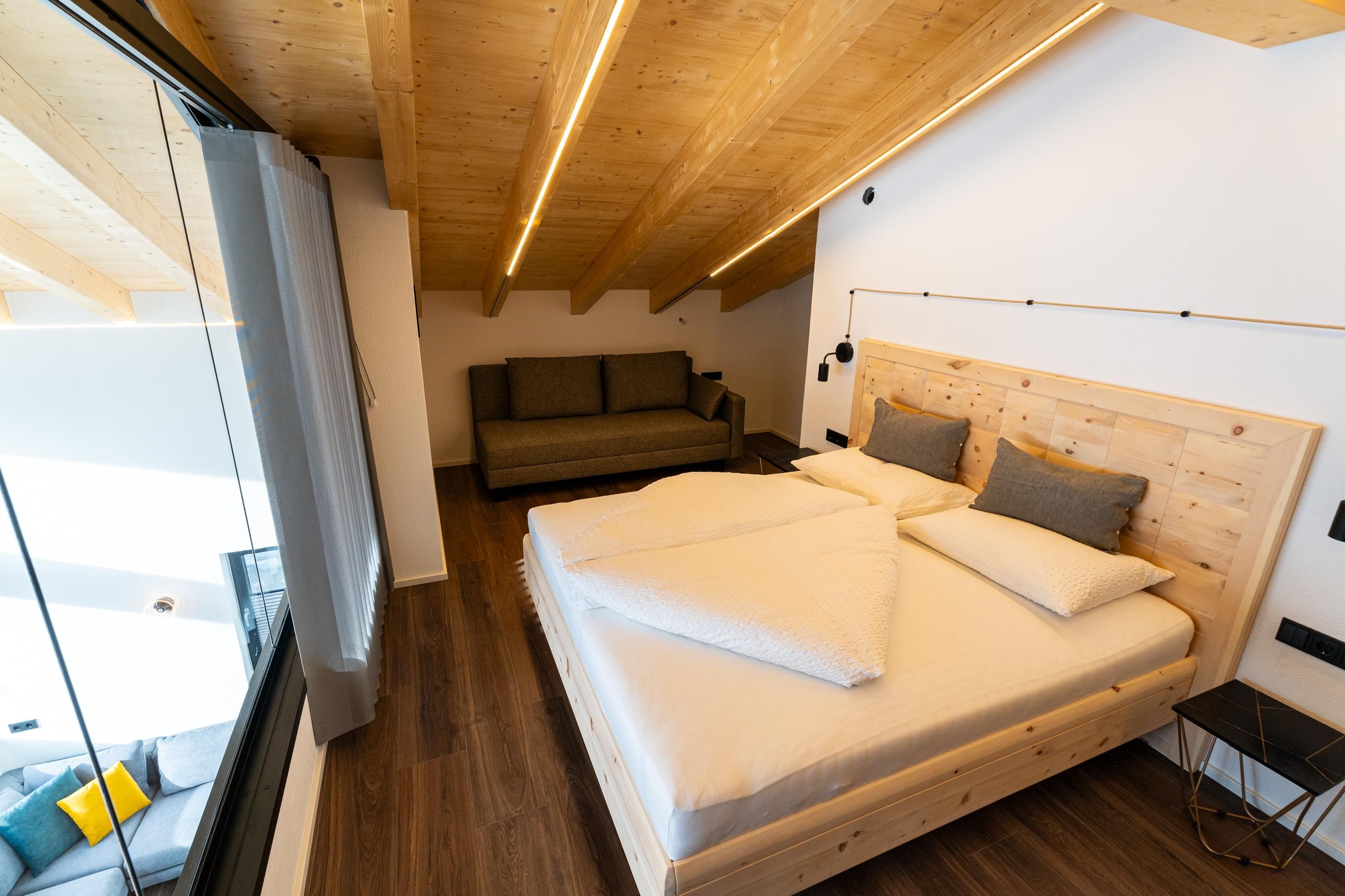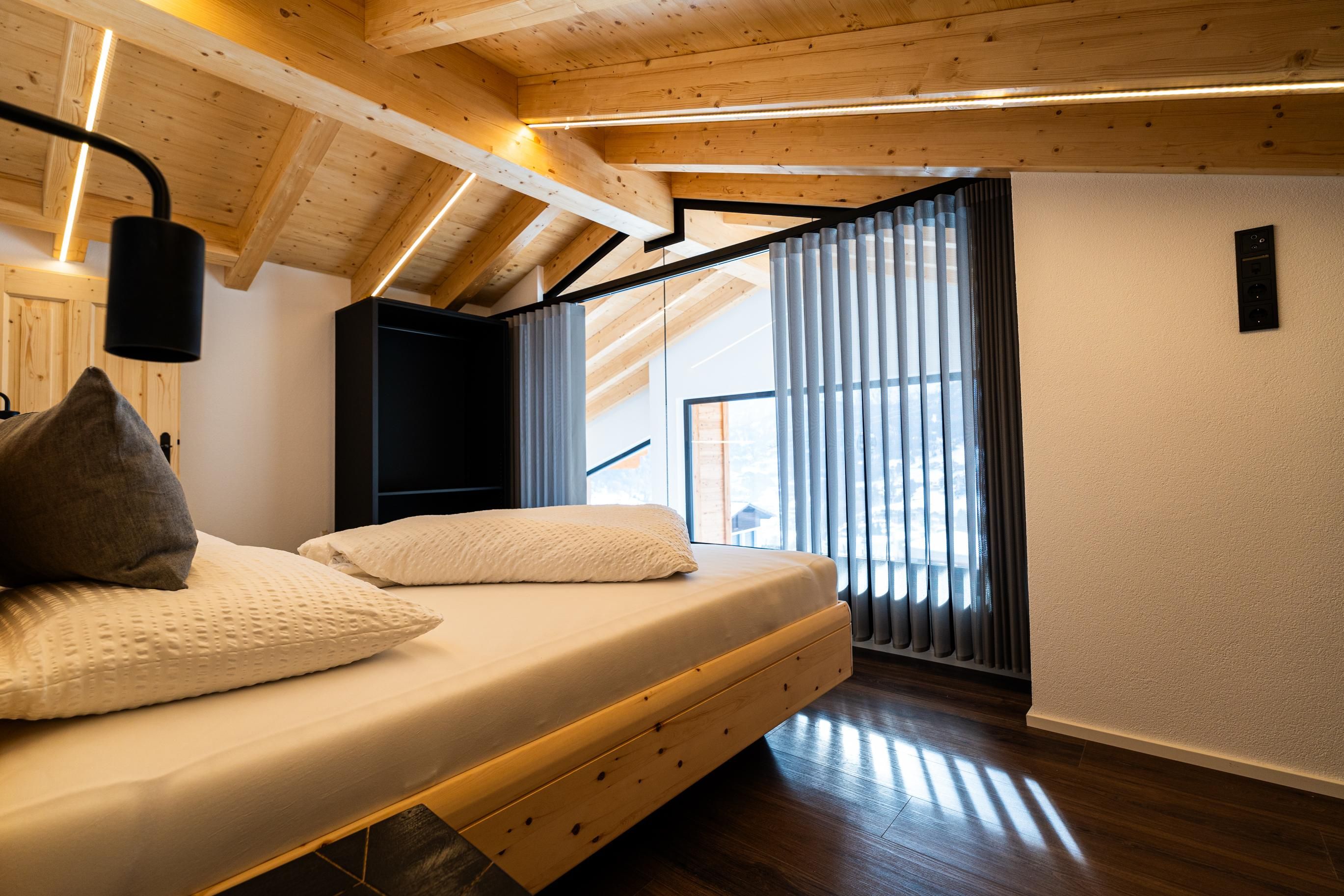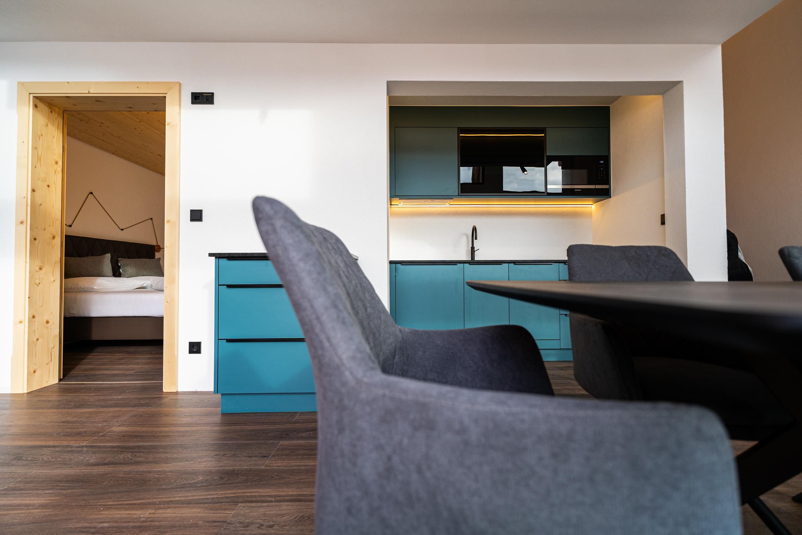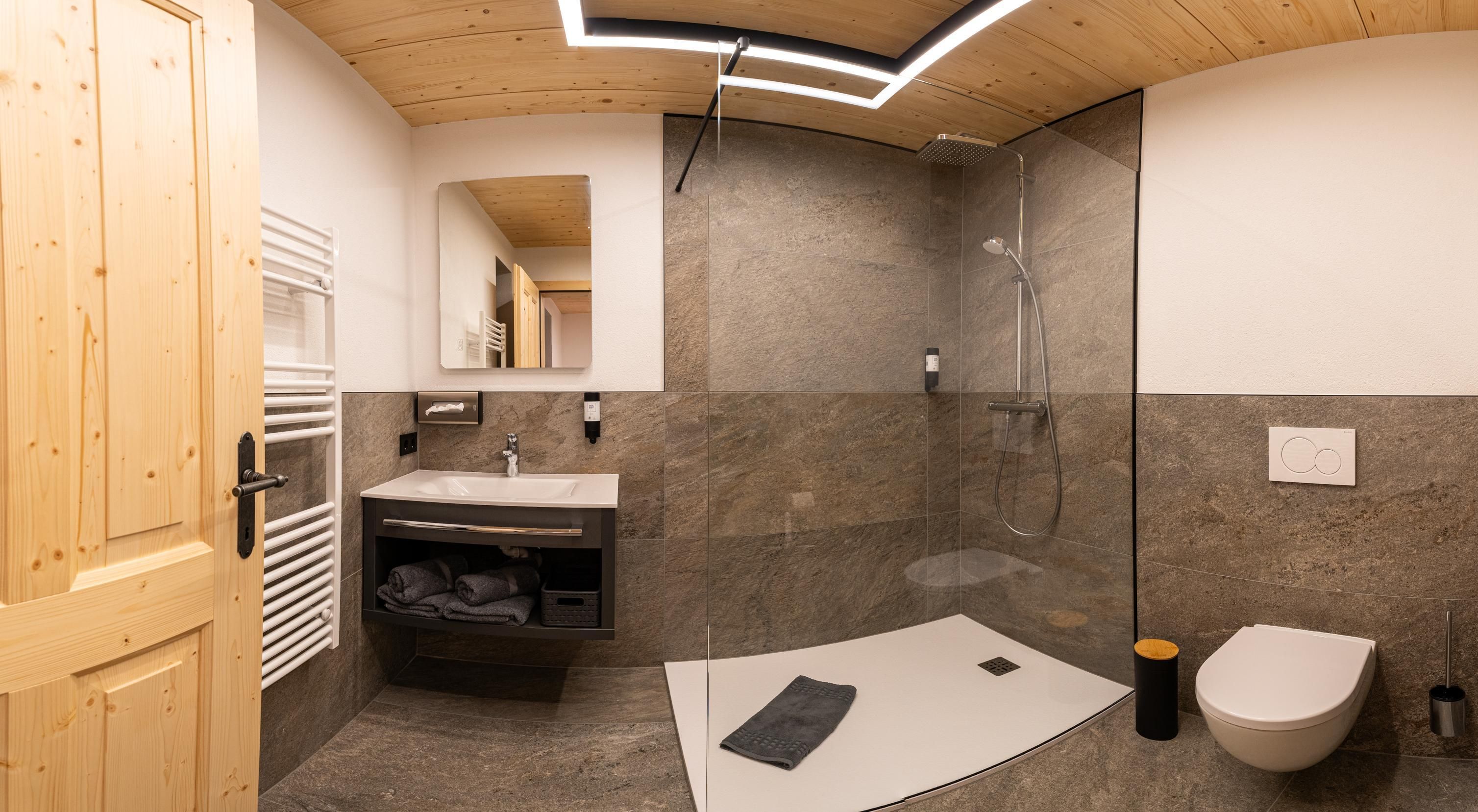 Zirka 150 m² zur alleinigen Nutzung, modern & hell – das ist unser Selda Chalet. Highlight ist das Schlafzimmer in der Galerie. Es besteht aus einem Zirben-Doppelbett und einem großen und gemütlichen Schlafsofa. Weiters gibt es noch ein Doppelzimmer, eine vollausgestattete Wohnküche mit Cerankochfeld, Kühlschrank, Quooker (Wasserhahn mit inkl. Wasserkocher), Mikrowelle, Nesspresso-Kapsel-Kaffeemaschine, Geschirrspüler, Essplatz und eine Sofaecke. 2 Badezimmer mit Regendusche, WC, Haarföhn und Duschgel. Skiraum mit Heizung und Spinten. Der Balkon bietet eine wunderbare Aussicht auf die umliegenden Berge.