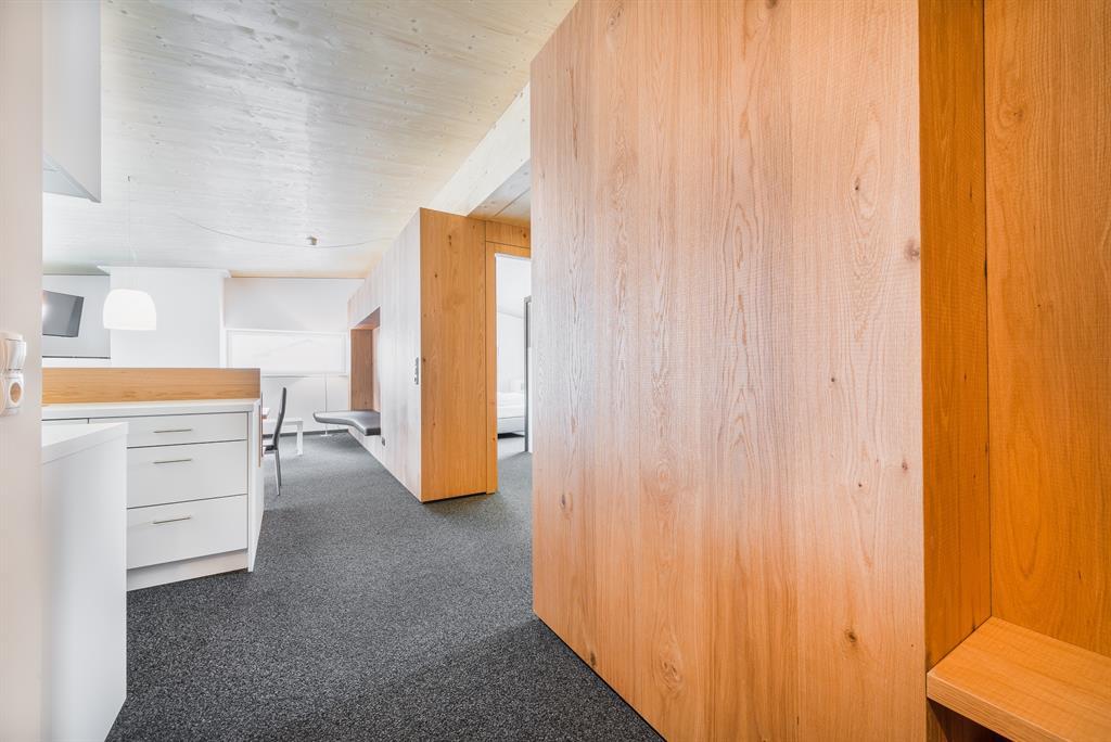 Auch der Wellnessbereich des Hotels ist gratis zugänglich - Bademantel, Badeschlapfen, Handtücher liegen bereit. Auch eine Vitaminbar mit Tee, Nüssen, Sirup und frischem Obst verkürzt die Pausen. Ein Ruheraum mit Ausblick auf die Brandnertaler Berge lädt zum Verweilen.