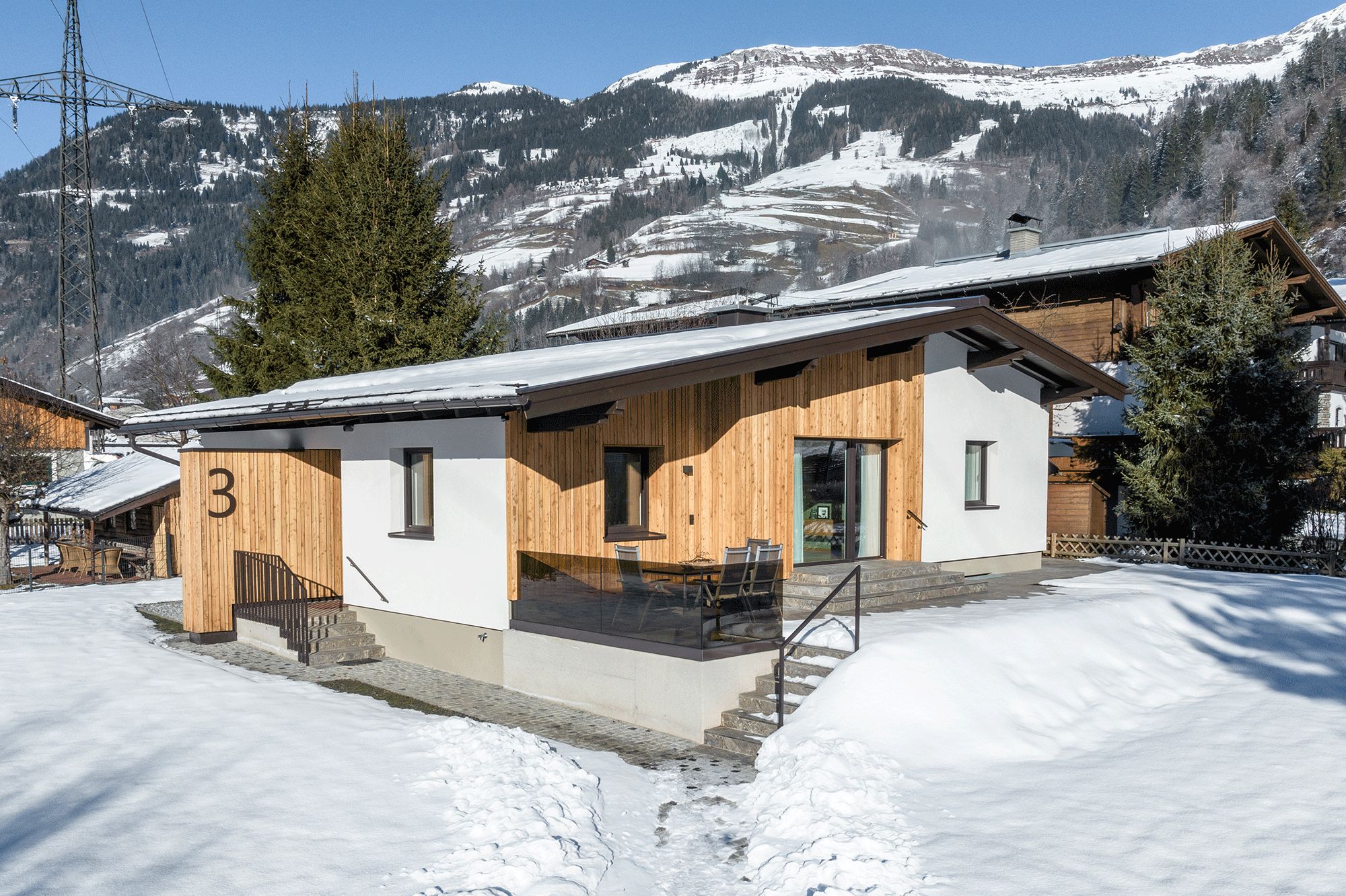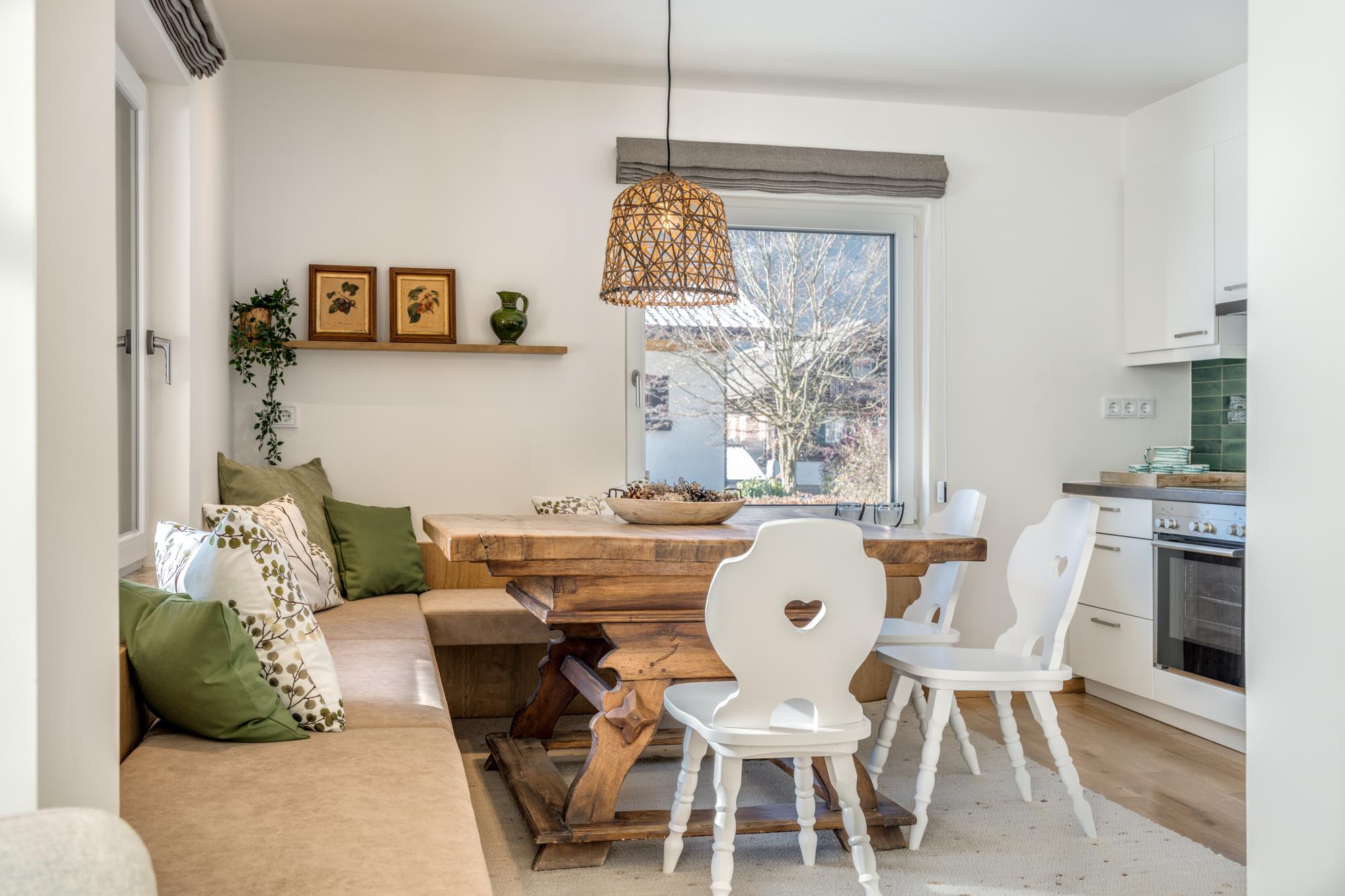 • Terrasse mit Sitzmöglichkeit für 6 Personen: Genießen Sie die frische Bergluft und den Ausblick.