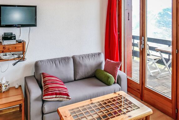 Foret E3, 2-Zimmer-Wohnung 34 m2 im 3. Stock. Objekt geeignet für 2 Erwachsene + 1 Kind. Zweckmässig eingerichtet: Eingang mit 1 Bett (80 cm, Länge 180 cm). Wohn-/Esszimmer mit Schwedenofen und Kabel-TV. Ausgang zum Balkon, Richtung Norden. 1 Zimmer mit 1 franz. Bett (1 x 160 cm, Länge 200 cm). Ausgang zum Balkon, Richtung Norden. Offene Küche (4 Kochplatten, Backofen, Mikrowelle, Fondue Set (Käse)). Bad/WC. Balkonmöbel. Sehr schöne Sicht auf die Berge und das Tal. Zur Verfügung: Haartrockner. Internet (WLAN, gratis). Parkplatz Nr. E3. Bitte beachten: Nichtraucher-Unterkunft. Maximal 1 Haustier/Hund erlaubt. Anstelle eines abgeschlossenen Schlafzimmers befinden sich manche Schlafplätze in einem offenen Bereich (Galerie, Nische etc.).