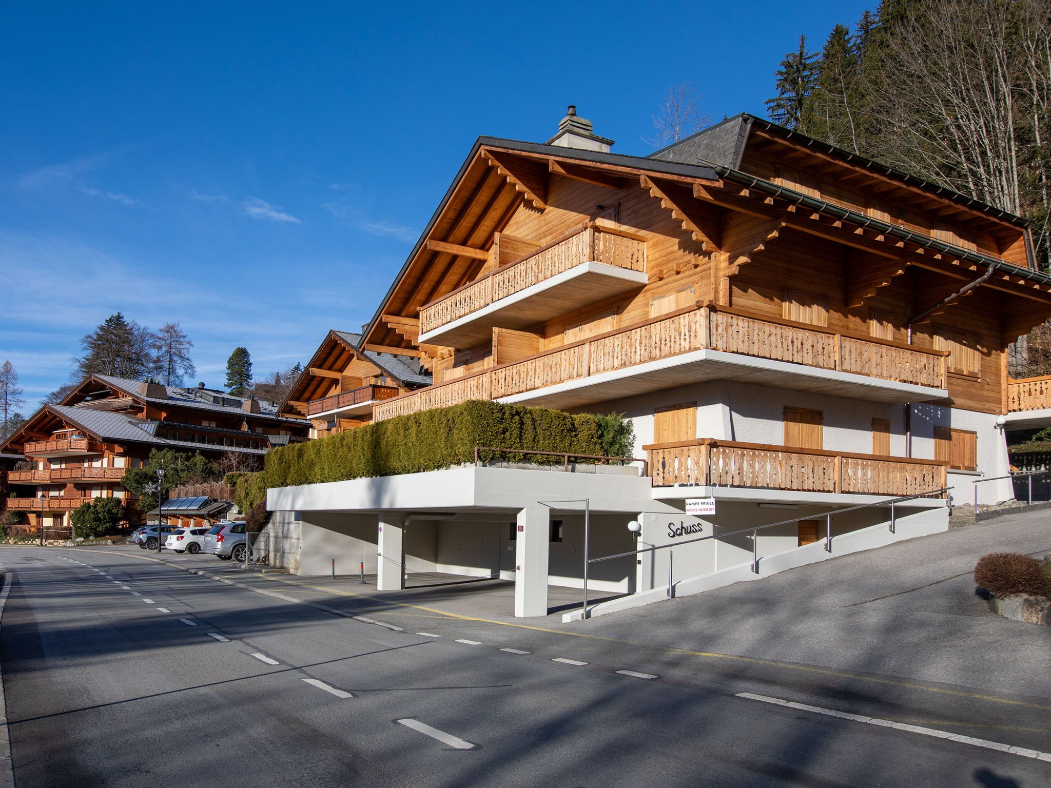 Barboleusaz: Appartementhaus Le Schuss. Im Ortszentrum von Barboleusaz, zentrale, sonnige Lage, 10 m vom Skigebiet, Richtung Süden. Parkplatz. Einkaufsgeschäft, Lebensmittelgeschäft, Restaurant 200 m, Bäckerei 500 m, Bushaltestelle 50 m, Bahnstation Barboleusaz 500 m, Hallenbad 5 km. Golfplatz (18 Loch) 10 km, Tennis 700 m, Tennishalle 5 km, Skisportanlagen 10 m, Ski-Kindergarten 5 km, Eisfeld 5 km, Kinderspielplatz 200 m. Bitte beachten: kein Fahrstuhl vorhanden. Der gratis Skibus fährt zum Skigebiet Les Chaux.