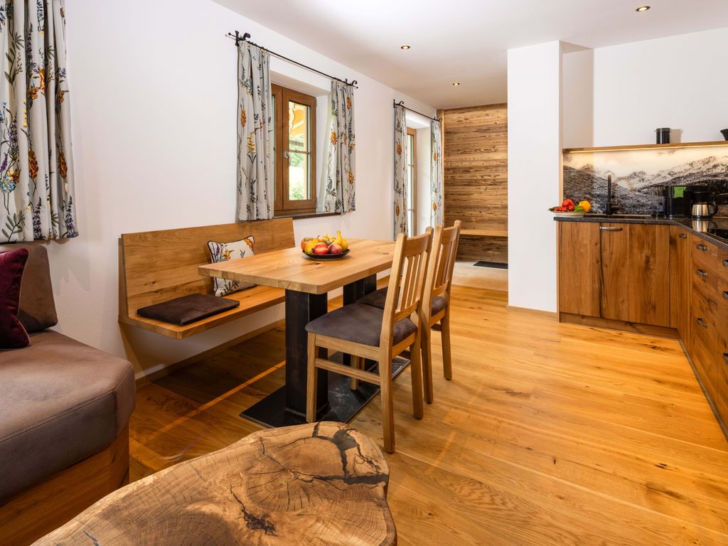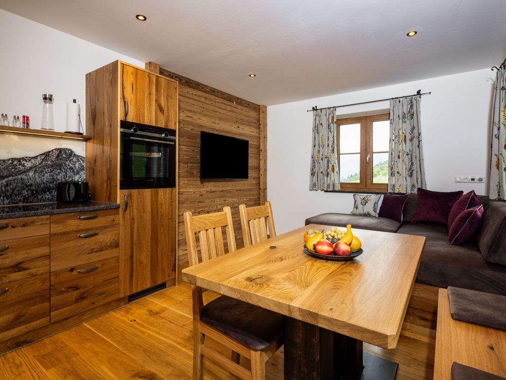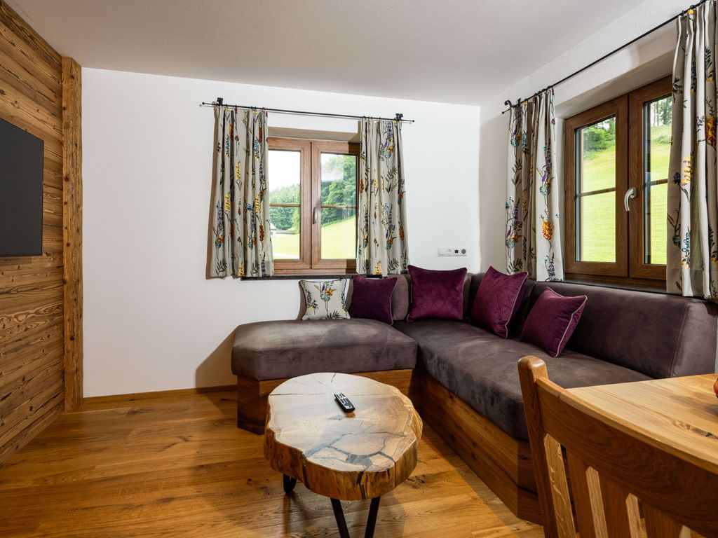 Willkommen in unserer Ferienwohnung Kallbrunnalm, die mit ihrem einzigartigen Mix aus traditionellem Altholz und modernen Elementen eine behagliche Atmosphäre für 2–4 Personen bietet. Ein Schlafzimmer mit handgefertigtem Holzbett, ein lichtdurchfluteter Wohnbereich mit Schlafcouch und eine luxuriöse Regendusche machen diese Wohnung zu einem wahren Wohlfühlort.